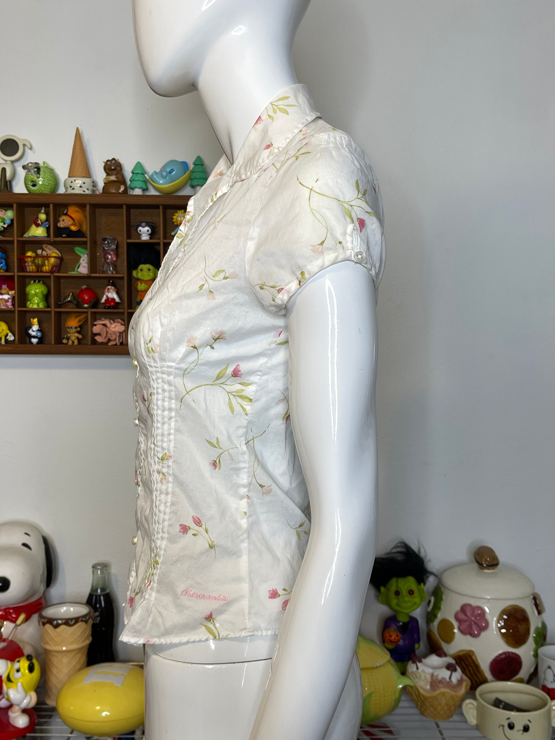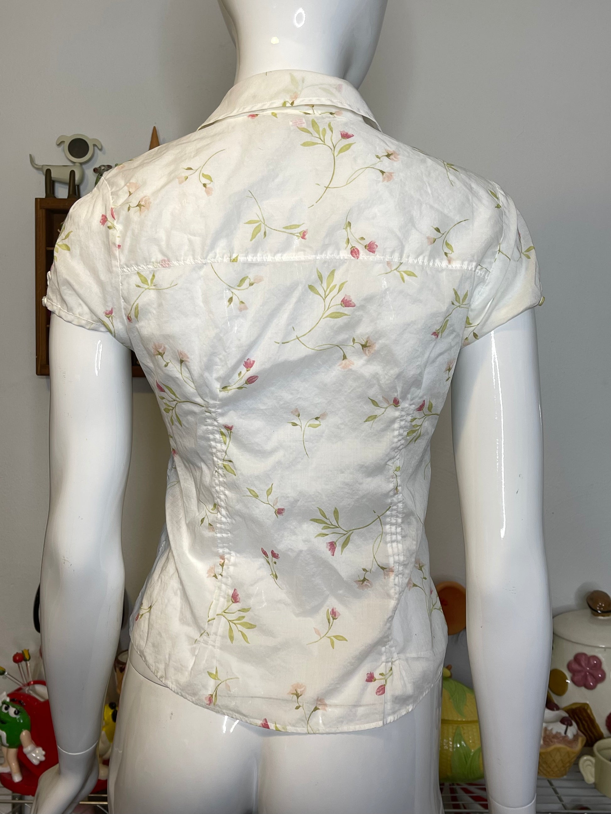 2000s Abercrombie Sheer Floral Print Button Blouse
