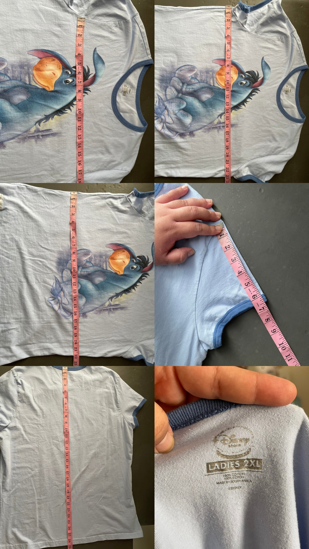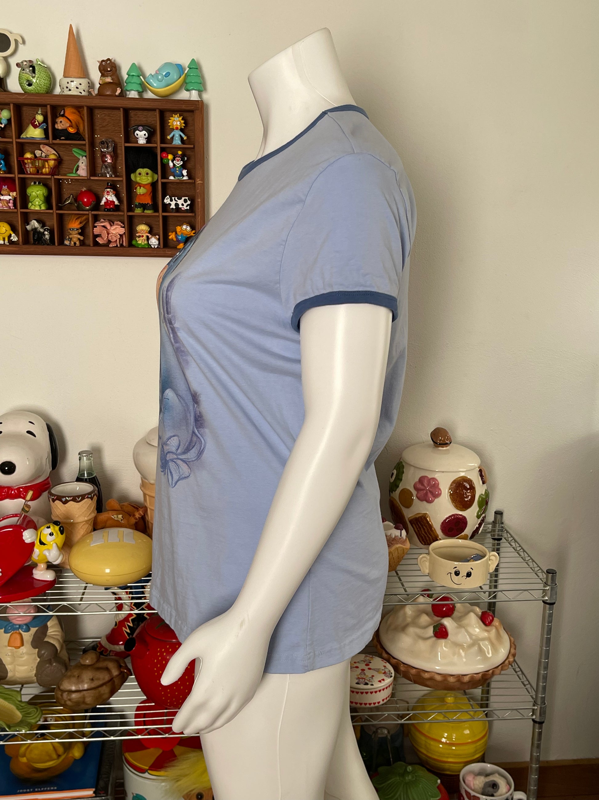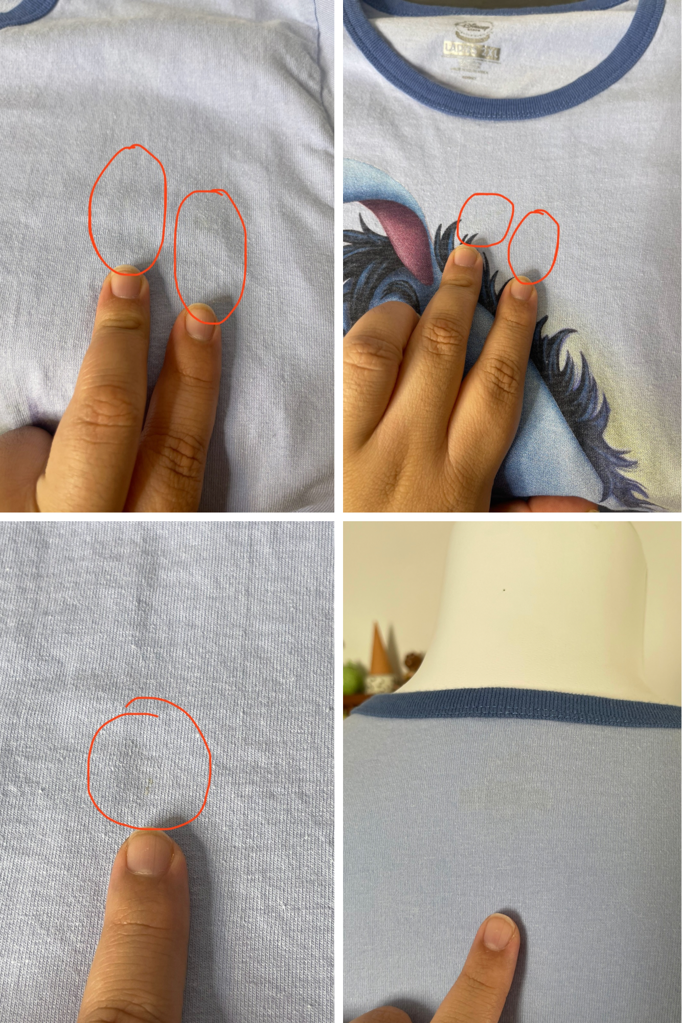 • This tee is in worn / preloved condition, it has several small light yellow stains on the front, and a small darker yellow stain near the bottom back. The tee also has light pilling throughout it. The fabric doesn't have much stretch.