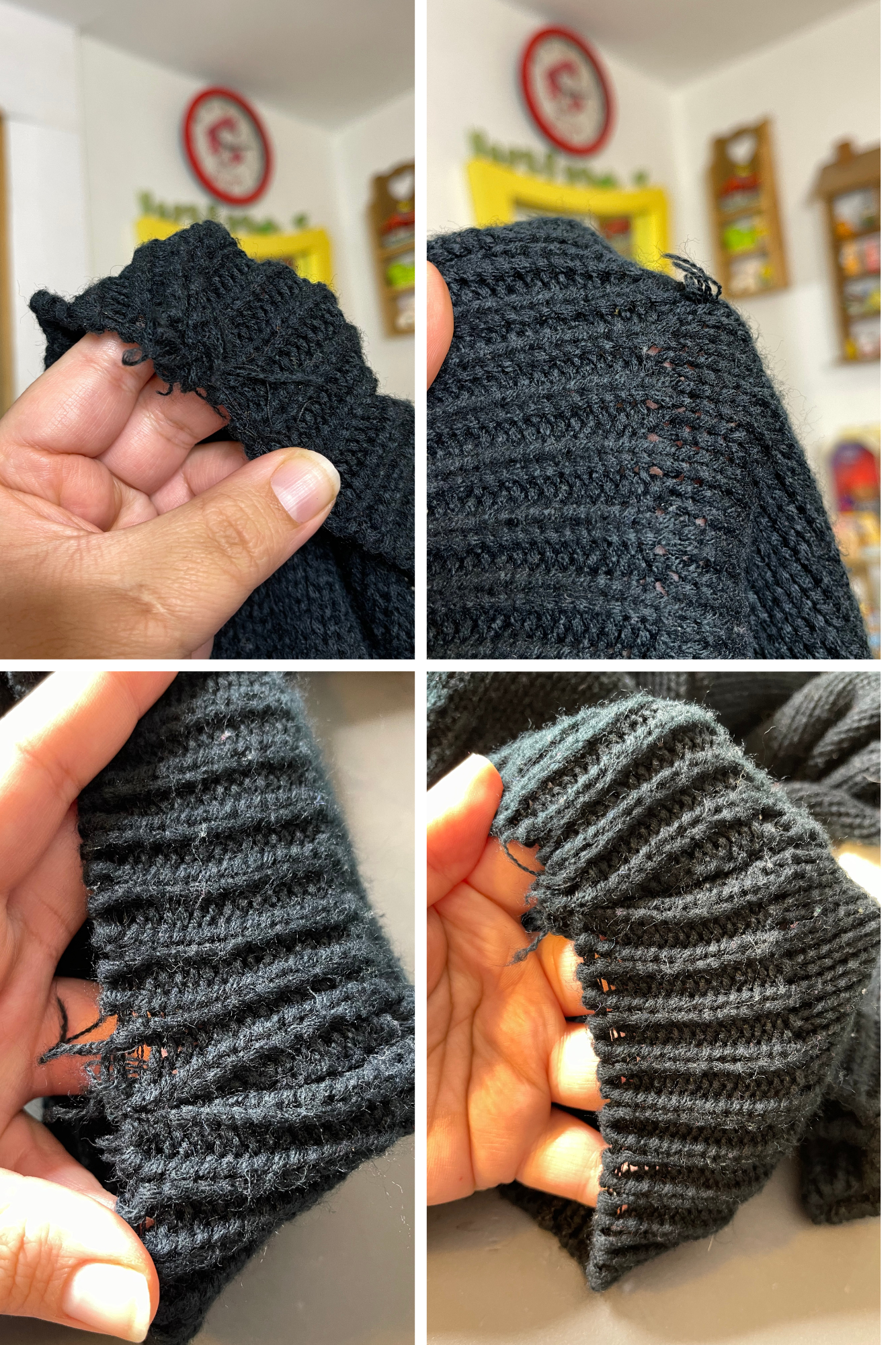 • This sweater is in preloved condition, it's worn and faded. It also has loose strings, loose knit areas & pilling. The sweater had some "holes" but I sewed them shut.