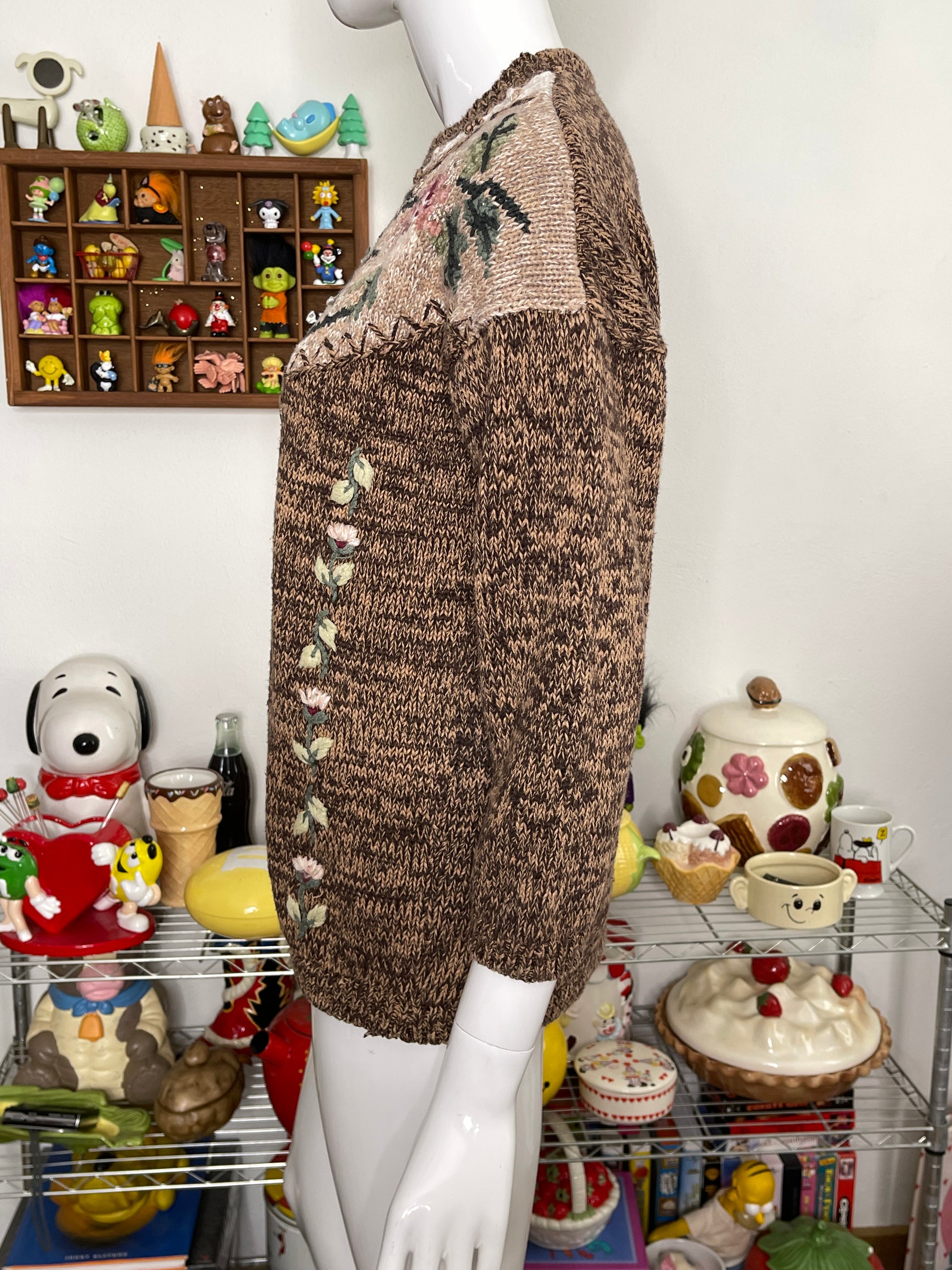 Vintage 90s Chunky Grandma Floral Knit Sweater