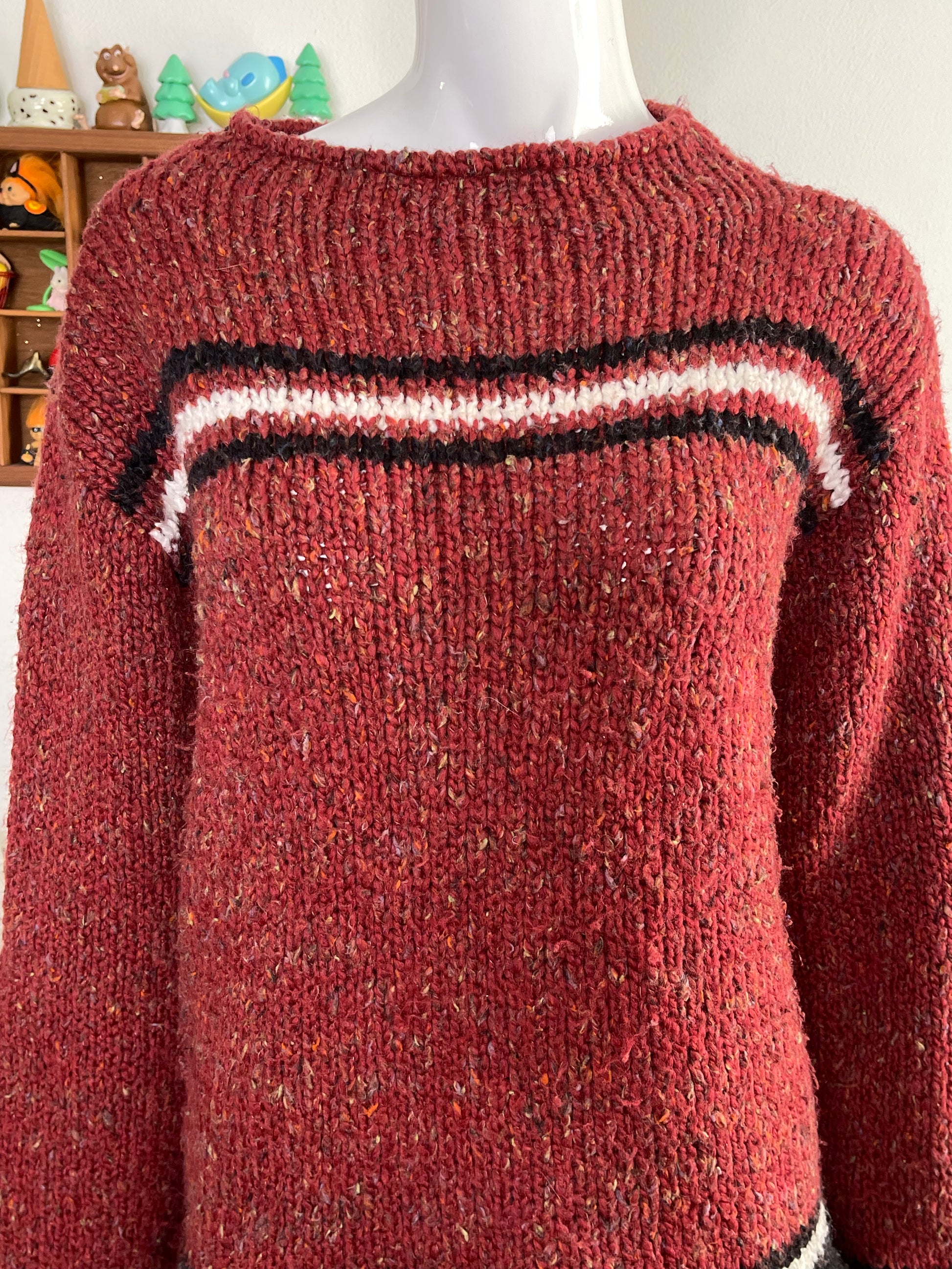 Vintage 90s Chunky Multi Color Striped Knit Oversized Sweater Sz M/L