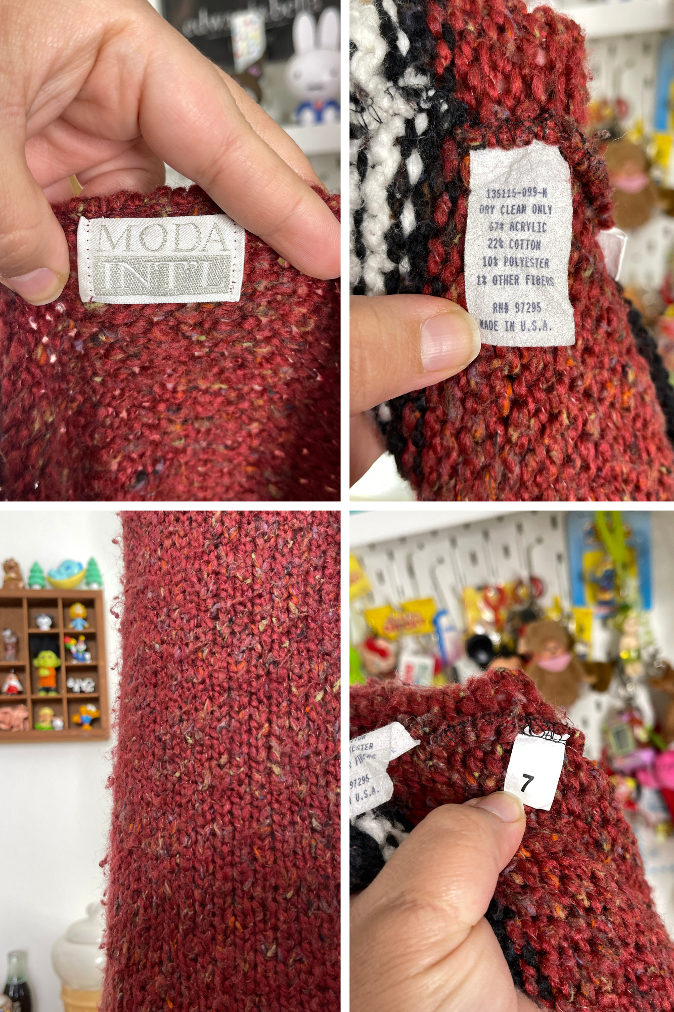 • This sweater is in preloved condition, its faded and worn. The sweater is a pilling style sweater, it has pilling all through the fabric but I removed most of it. The sweater also has loose knit areas & snags. The white stripe has some yellow staining. Please look at all the photos.