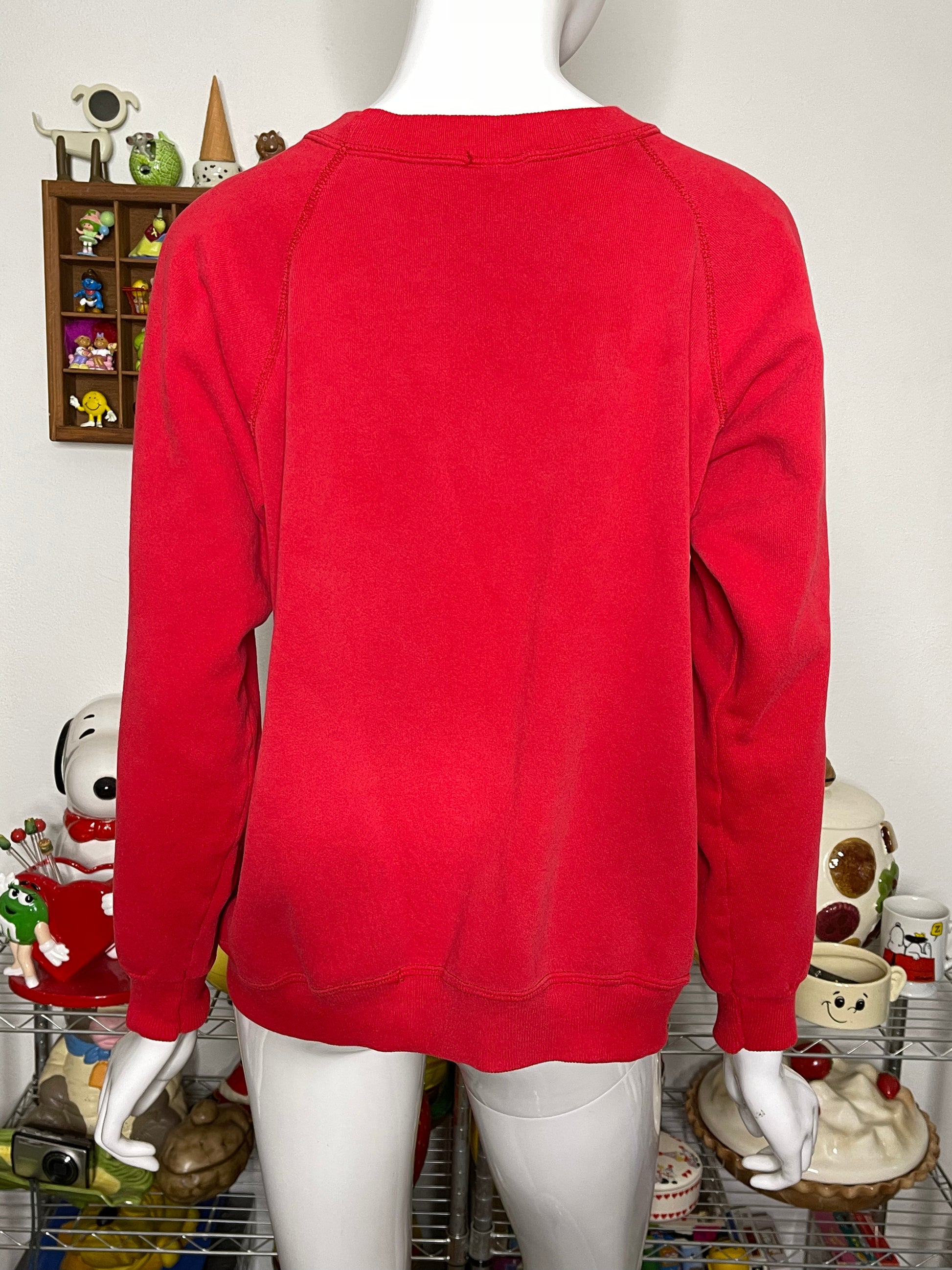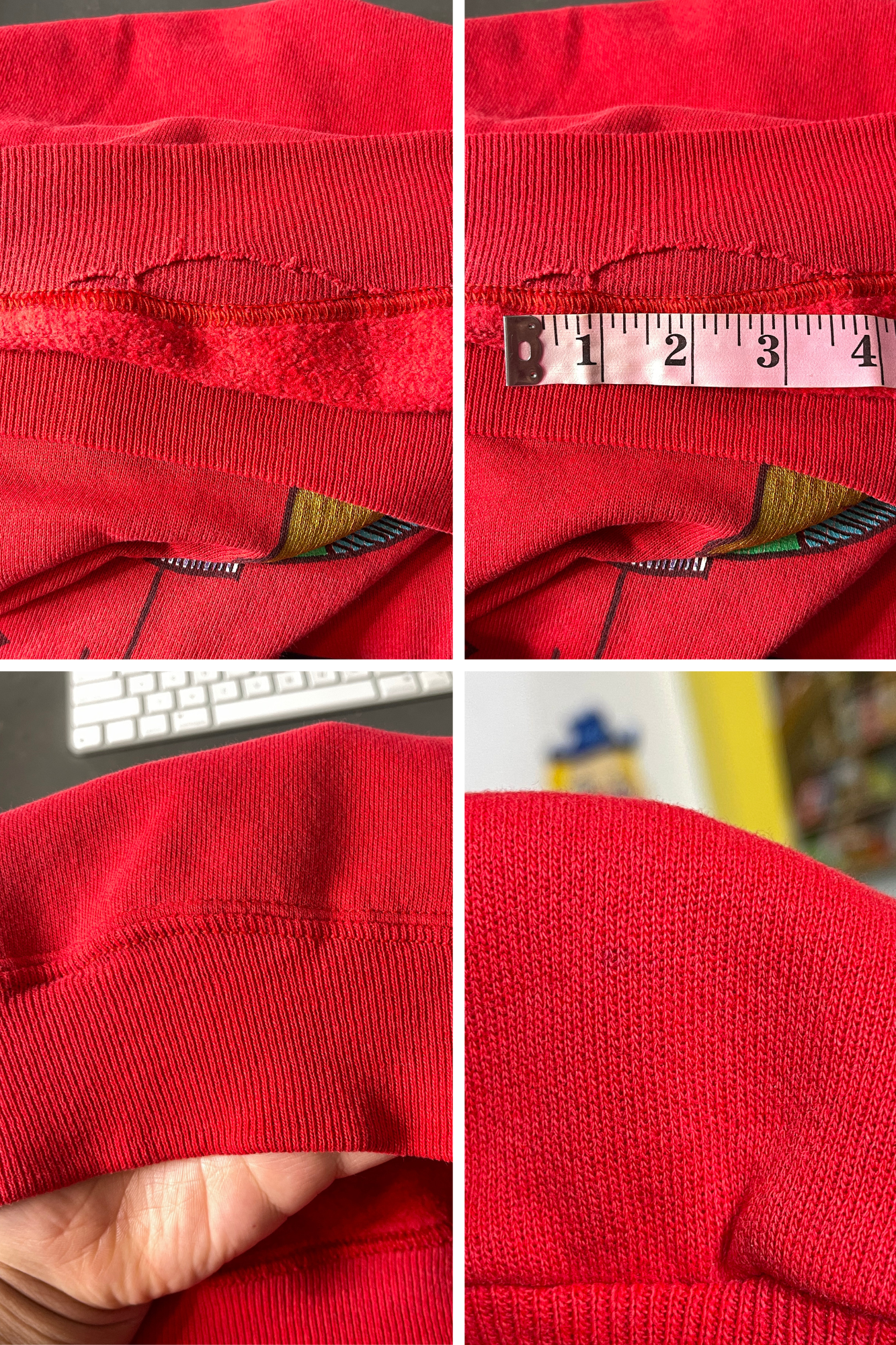 • The sweater is in preloved vintage / flawed condition, it has some fading stains, and wear throughout the fabric. The sweater also has some light distressing & tons of cracking and wear on the graphic. The major flaw is the big rip it has on the inside of the sweater (on the band), but it's not noticeable while wearing since its on the inner part of the fabric. (Please see photos)