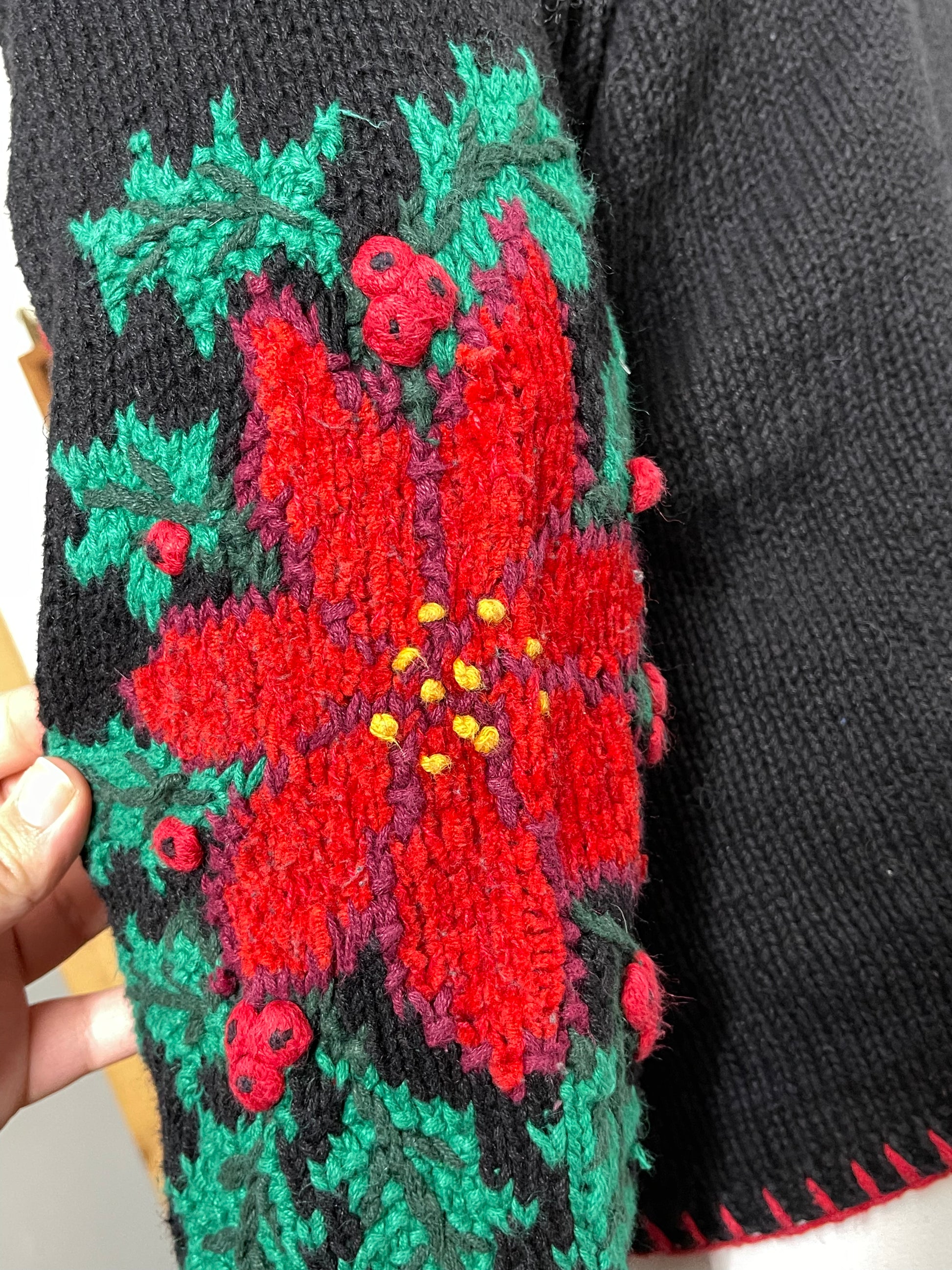 90s Poinsettia Floral Handknit Cardigan Sz L / XL