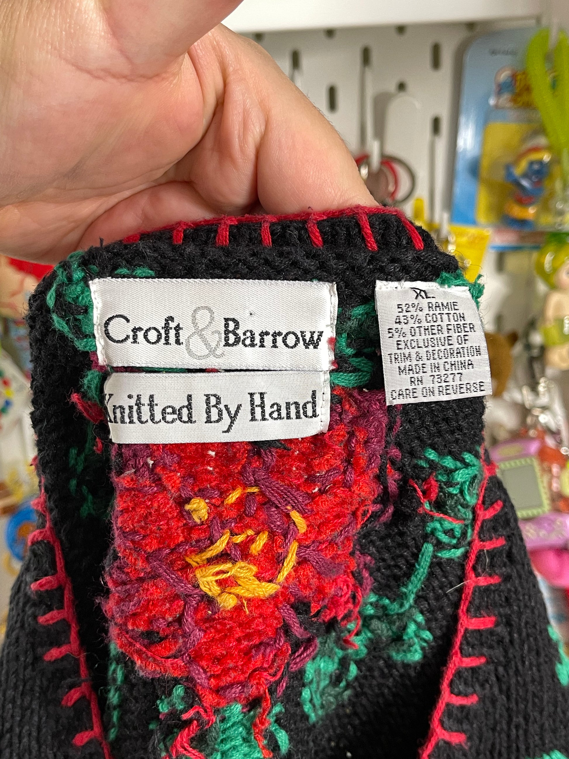 • From the late 90s, Knitted by hand. The flowers are a chenille material