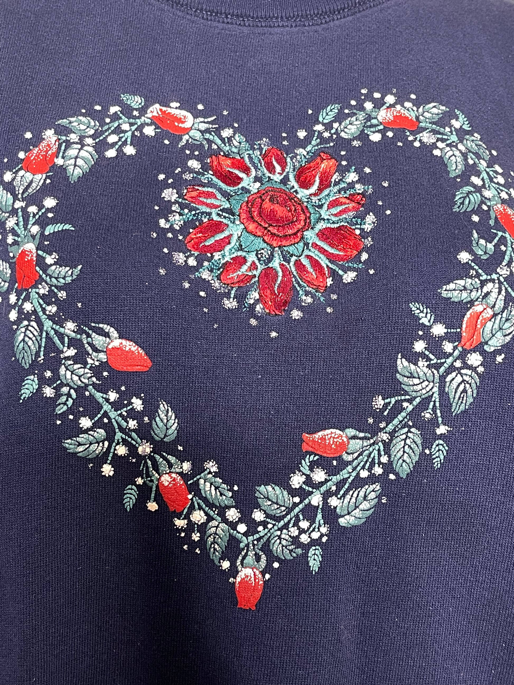 90s Winter Rose Emboridered Crewneck Sweater Sz L