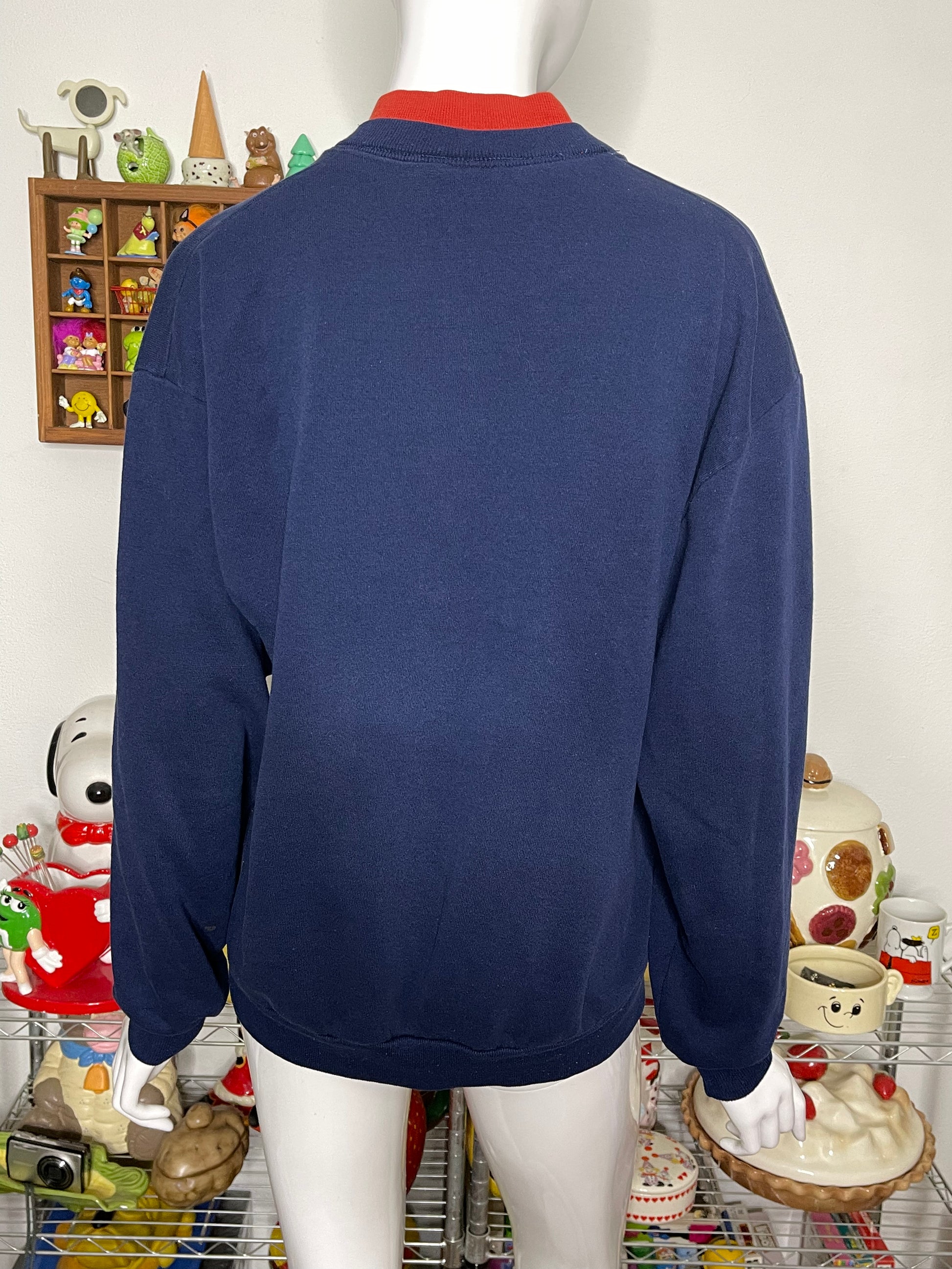 Vintage Winter Snow Navy Blue Embroidered Crewneck Sweater