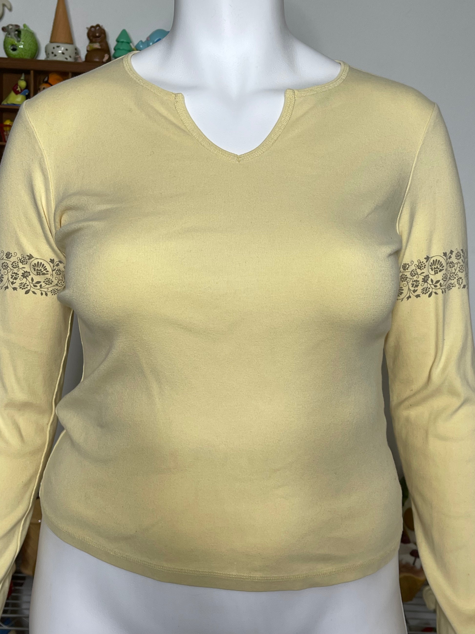 Vintage 90s Pale Yellow Mandala Gap Long Sleeve