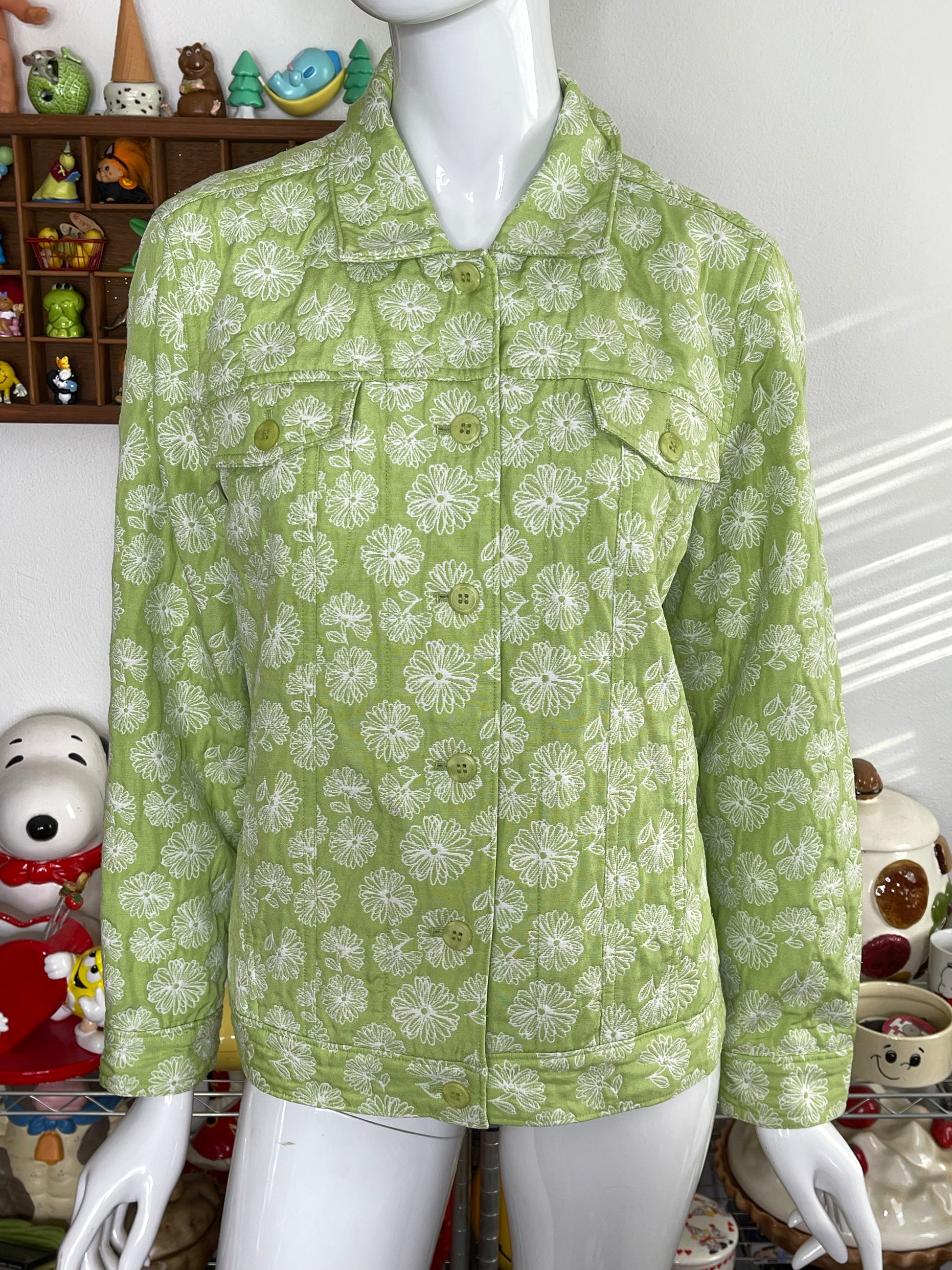 Apple Green Daisy Embroidered Floral Jacket Sz 14M ( L )