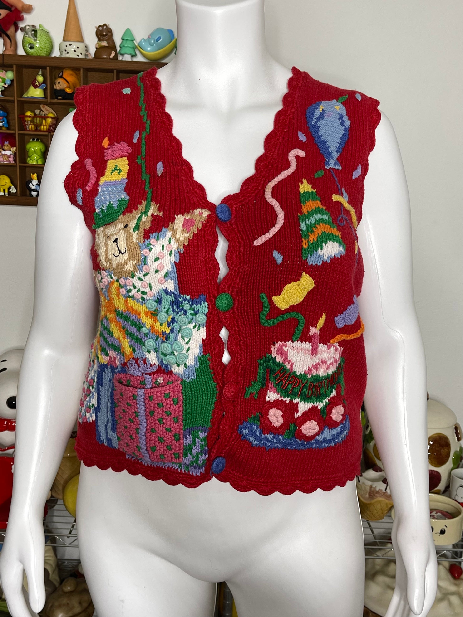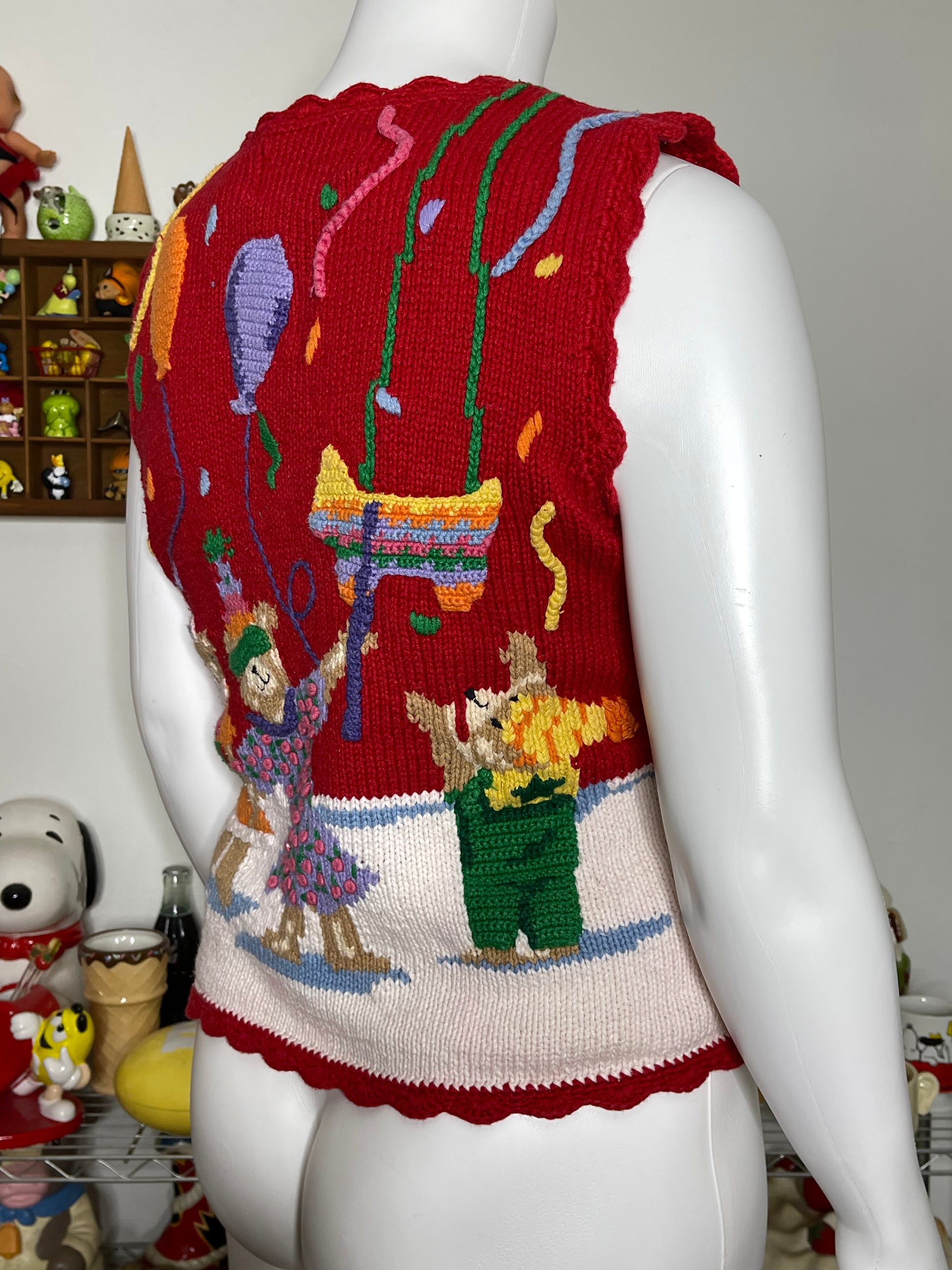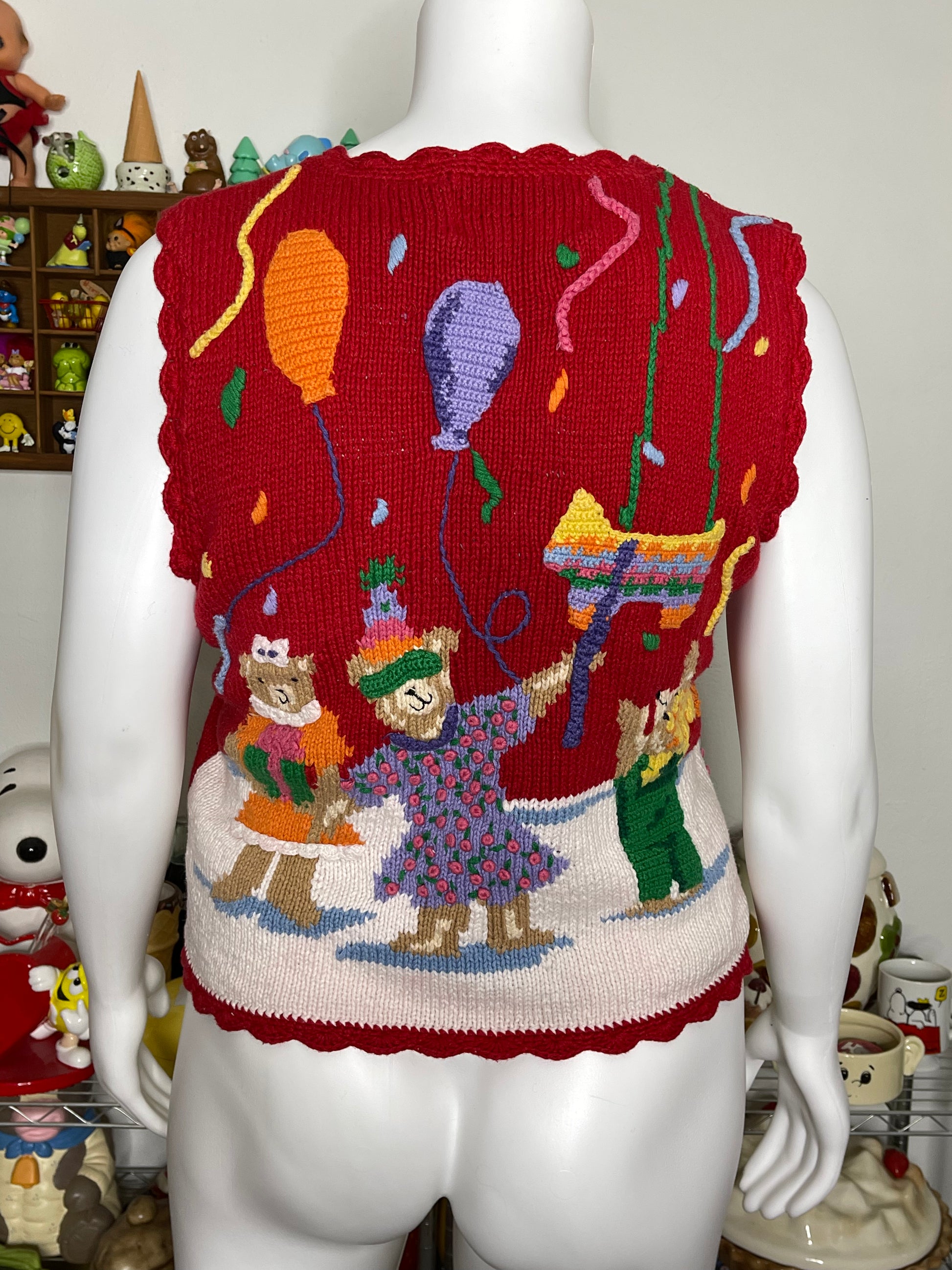 Vintage 90s Birthday Bears Hand Knit Vest Sz M/L
