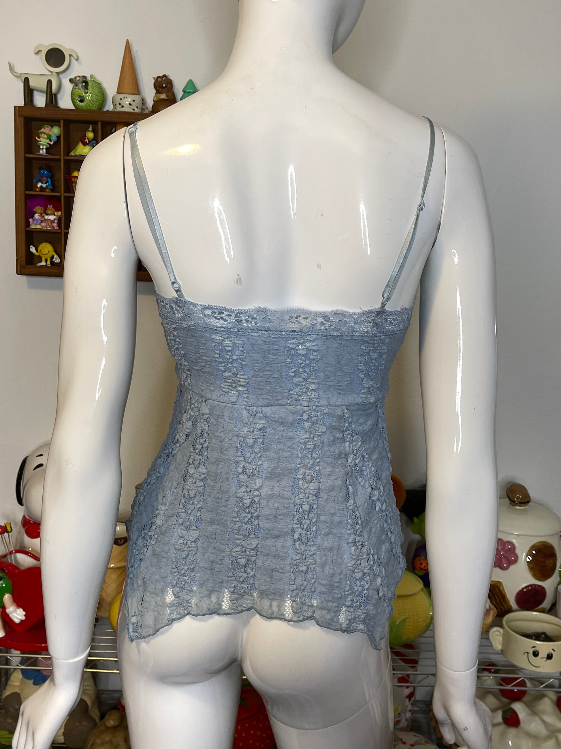 2000s Baby Blue Beaded Sequin Fairy Tank Top