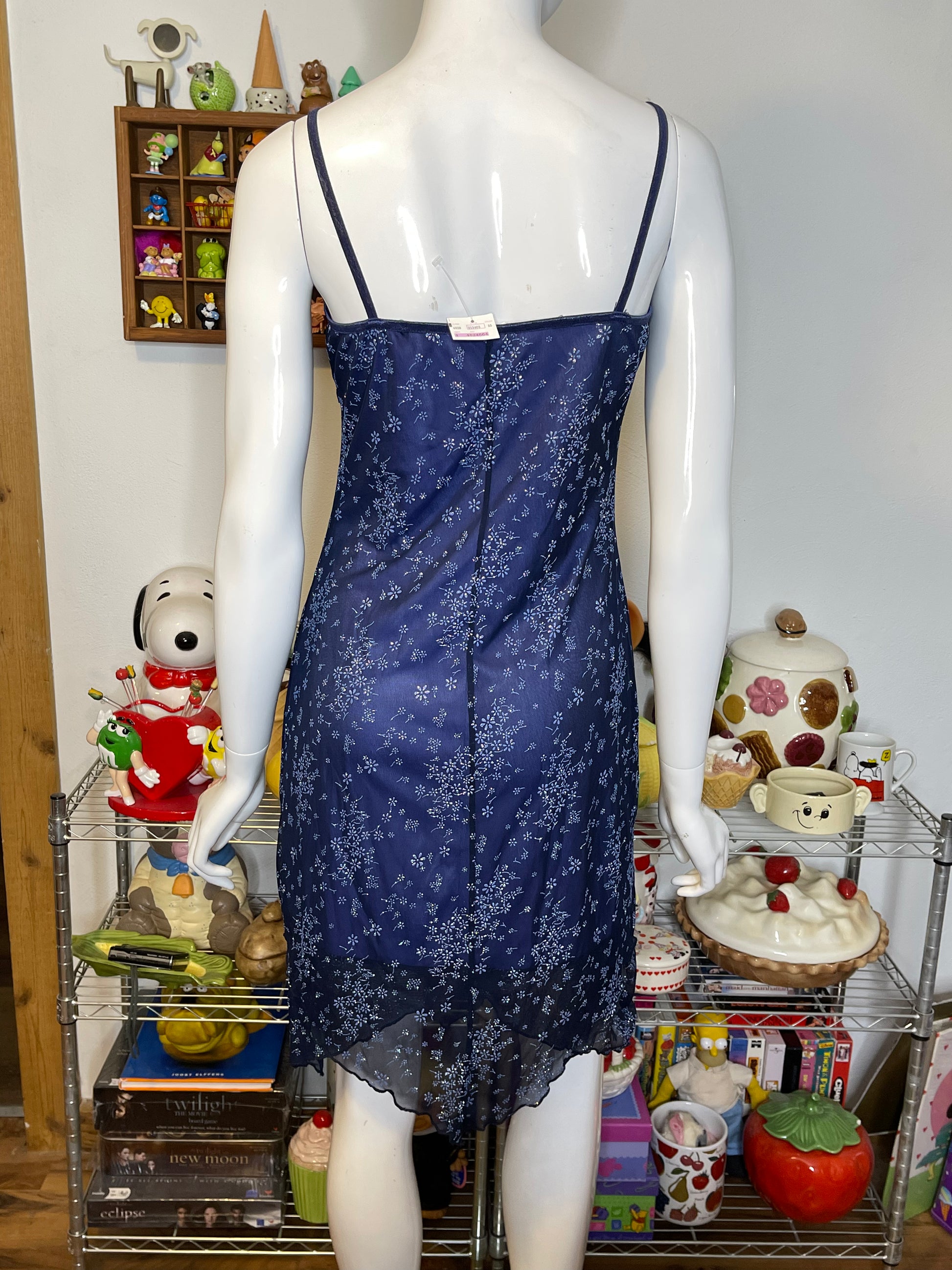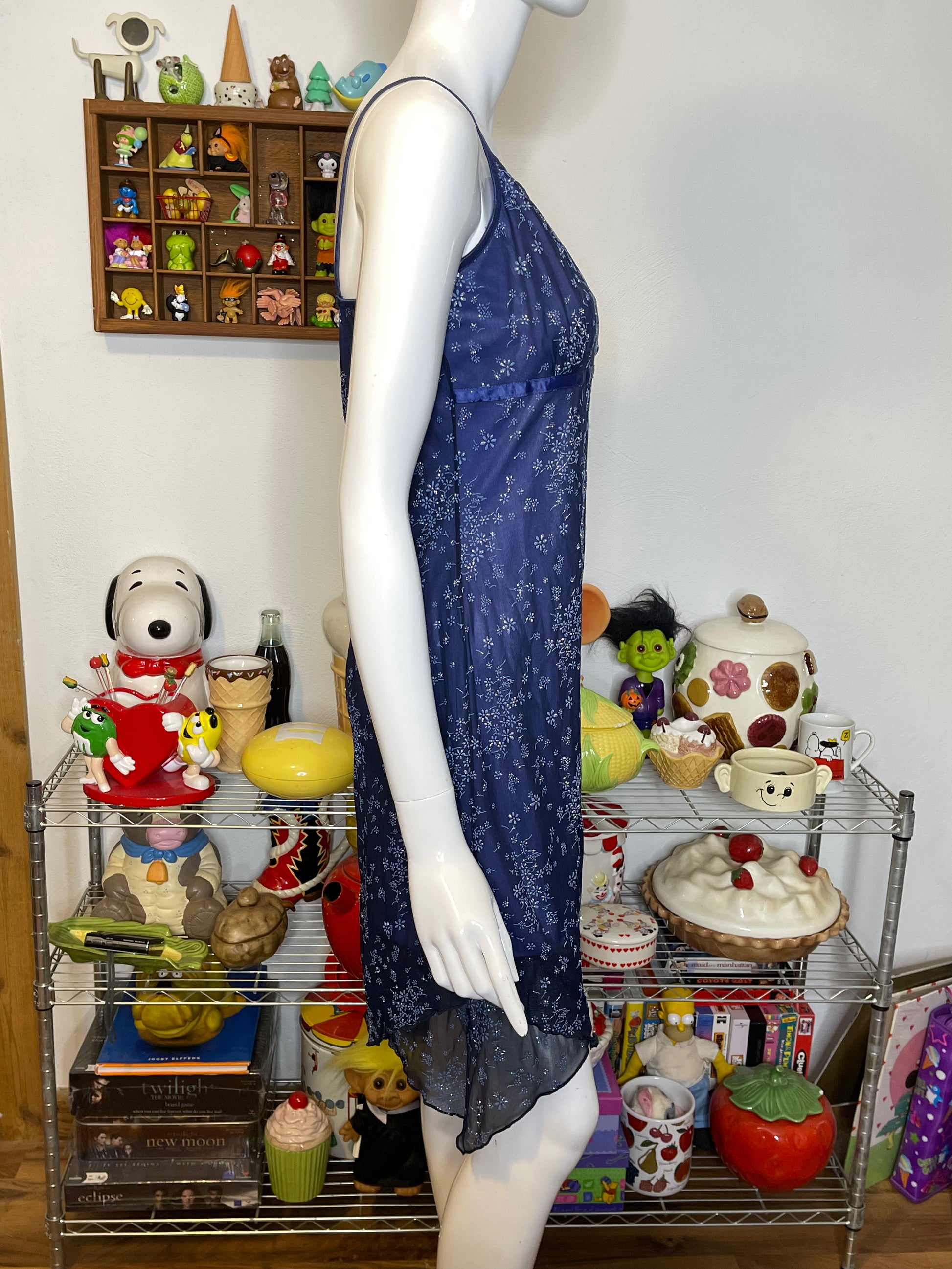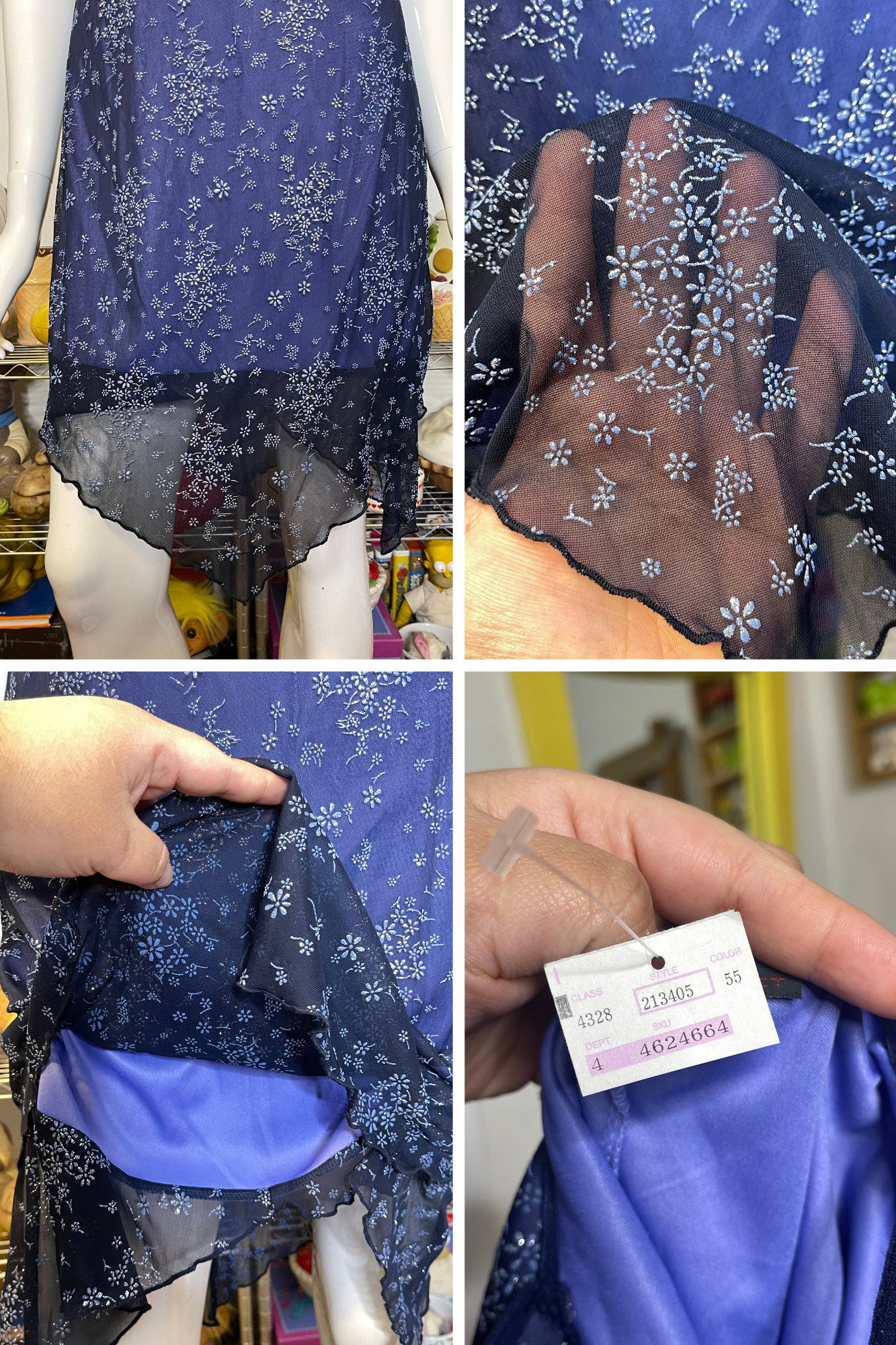 Vintage Deadstock Glittery Flower Print Mirco Mesh Midi Dress Sz M/L