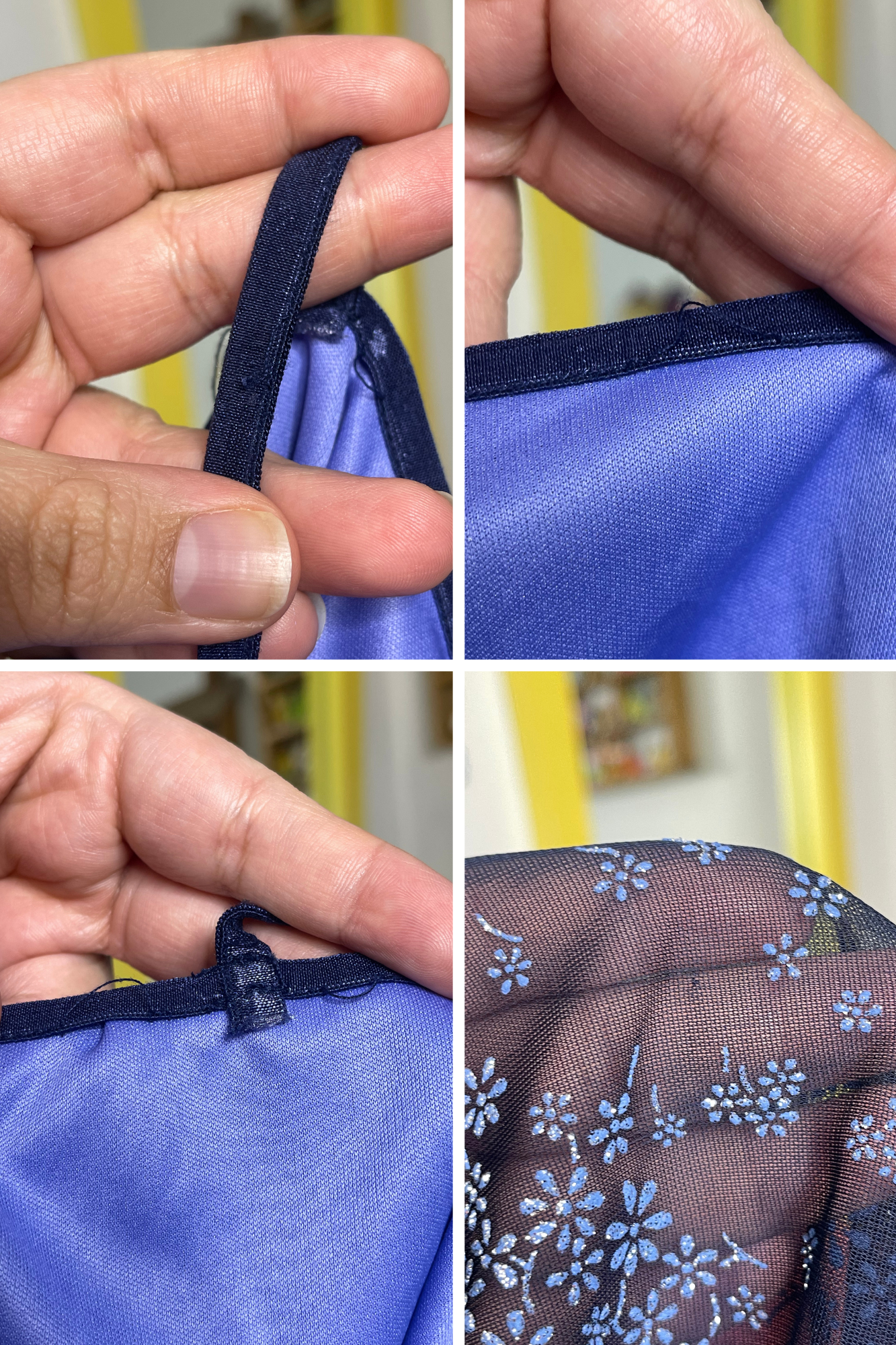 • Light weight & stretchy fabric! The top layer is a mirco mesh, the bottom layer is a slip. The dress is new with tag, but it does have small snags and missing glitter from storage. The dress has loose seems near the neck / back.