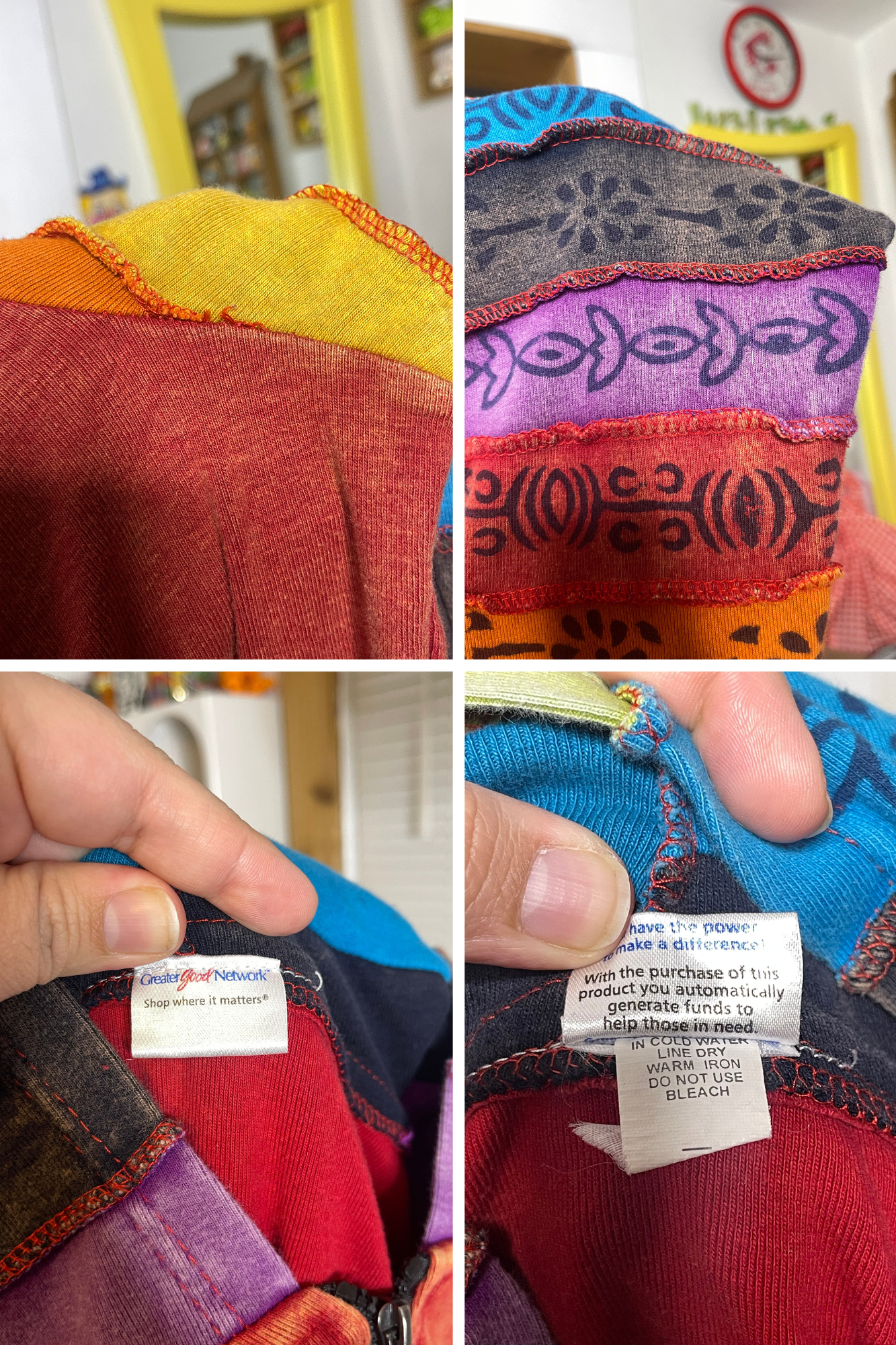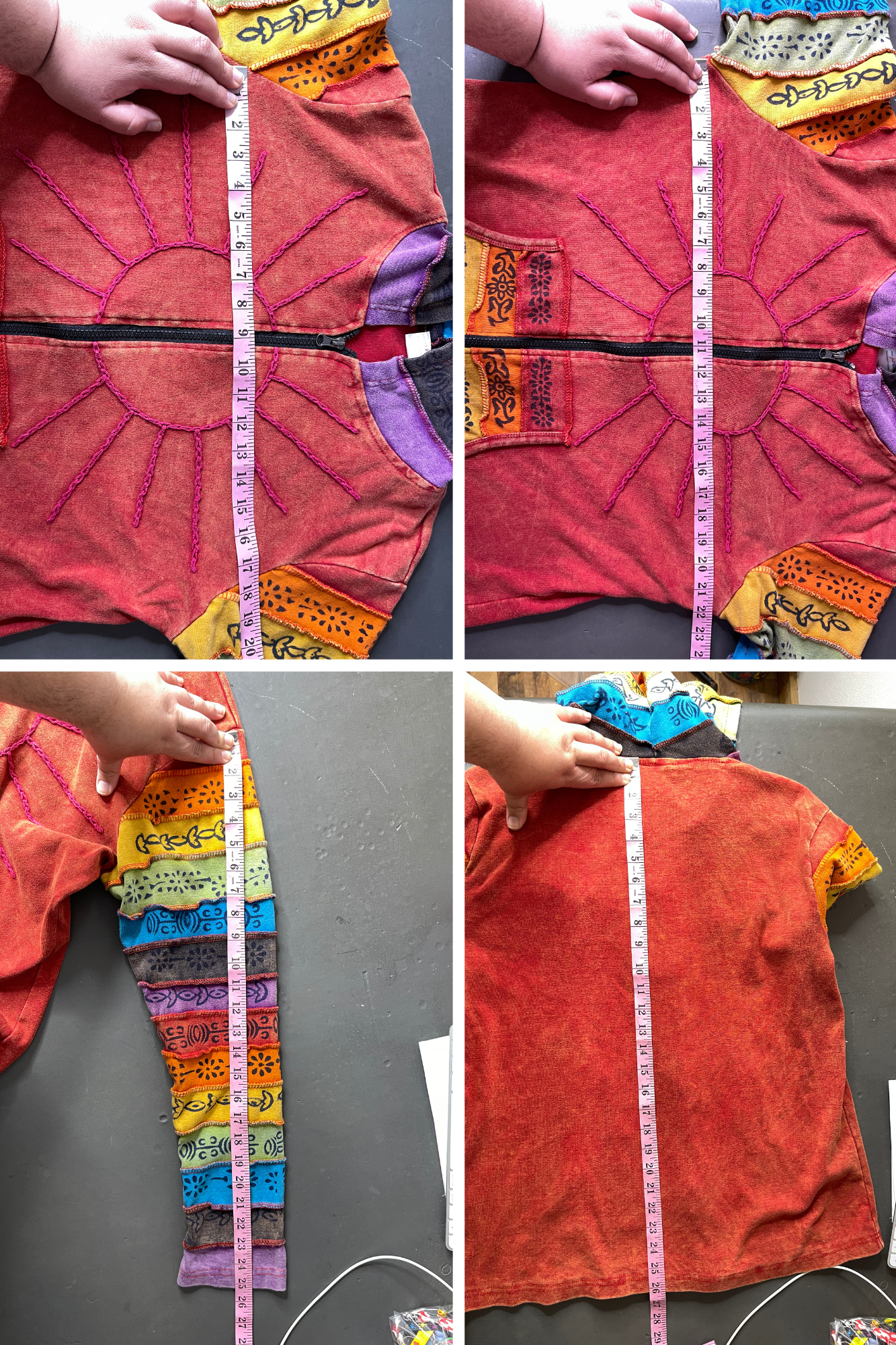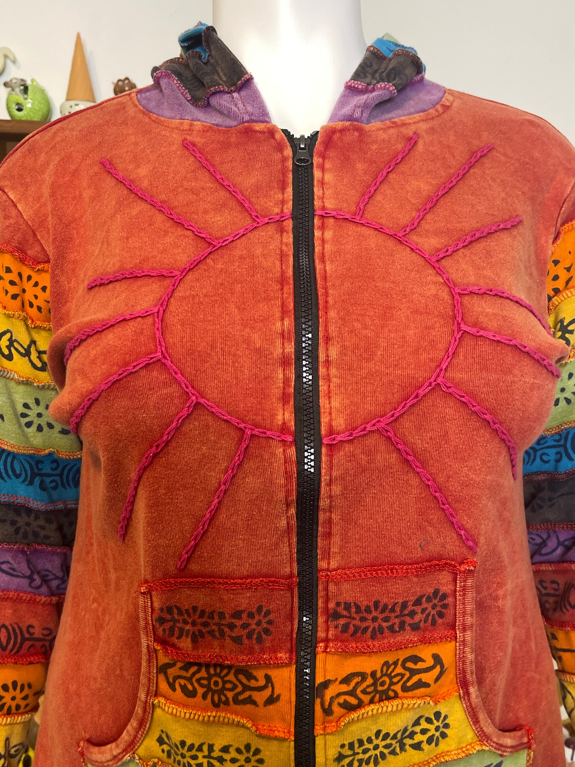 Rainbow Colorful Hippie Boho Style Zip-Up Hoodie Sz L/XL