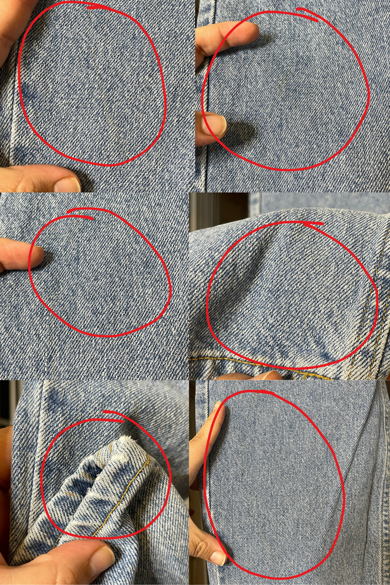 • In preloved worn & faded condition, the jeans have several yellow stains. The jeans also have distressing & yellowing. The noticeable stains are on one of the front legs. Both bottom of the legs have distressing. Please see all photos.