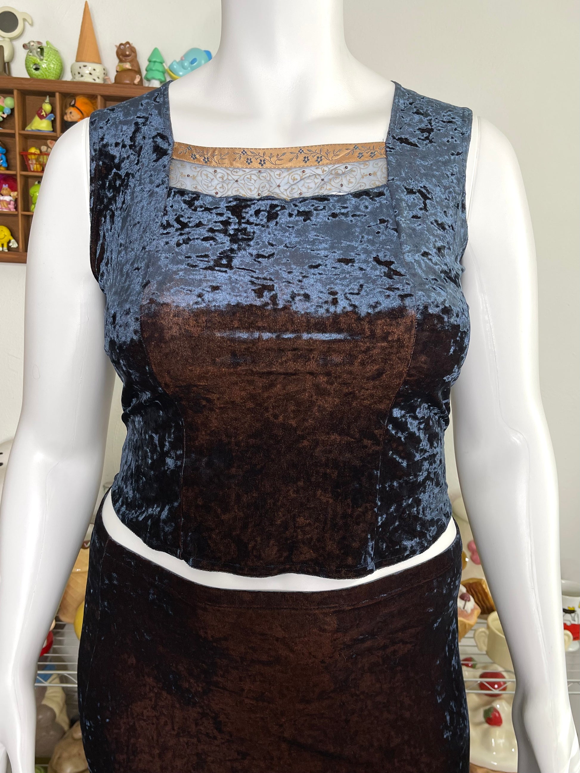 Vintage 90s Duo Chrome Crushed Velvet Top & Maxi Skirt Set