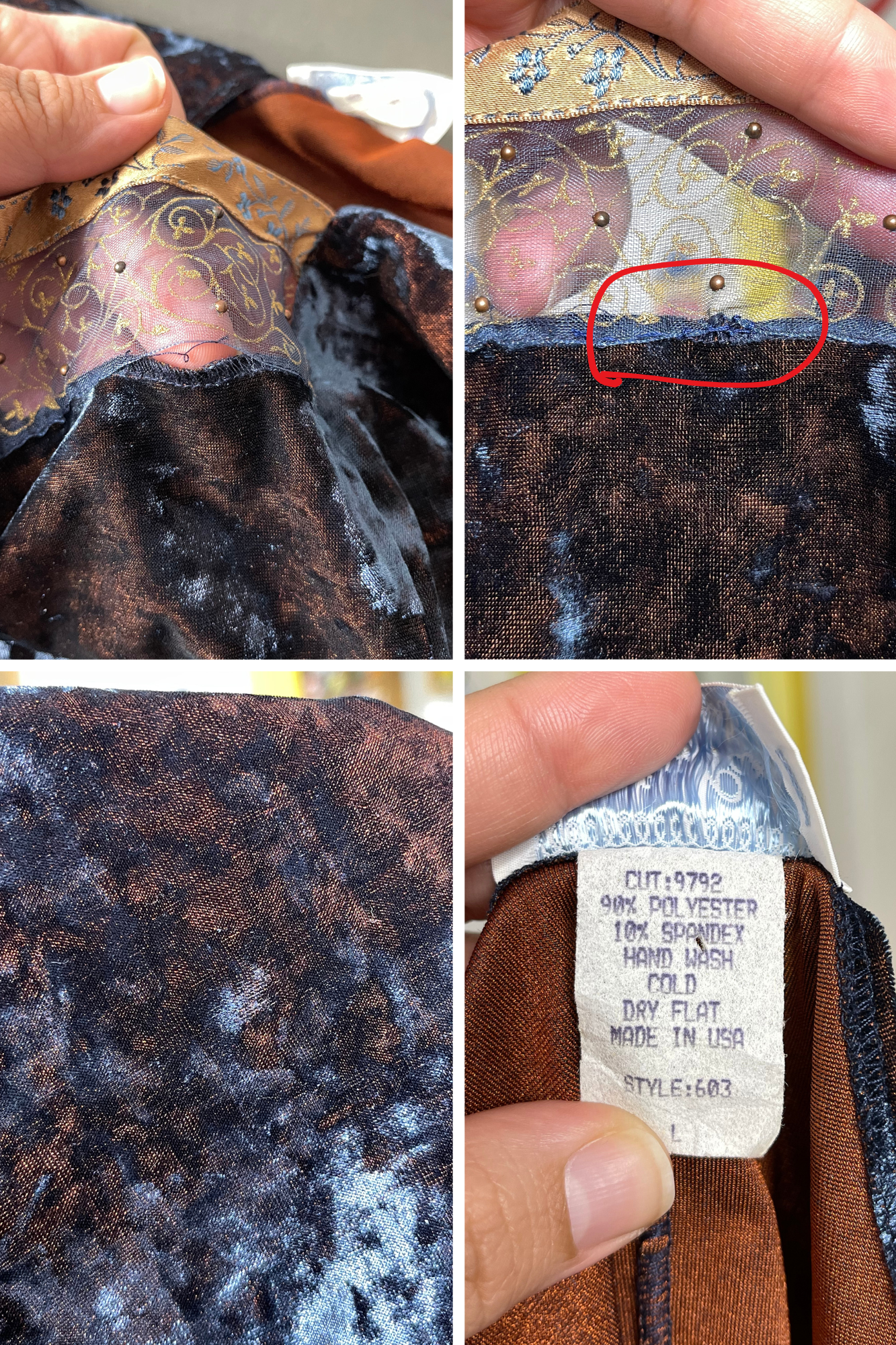 • Stretchy fabric! In worn preloved condition, it has scuffs, fabric marks and discoloration. The bust had a small rip but I fixed it the best I could.