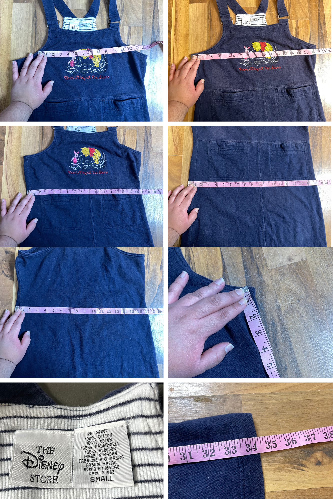 Vintage 90s Pooh & Piglet Embroidered Oversized Overall Dress Sz S