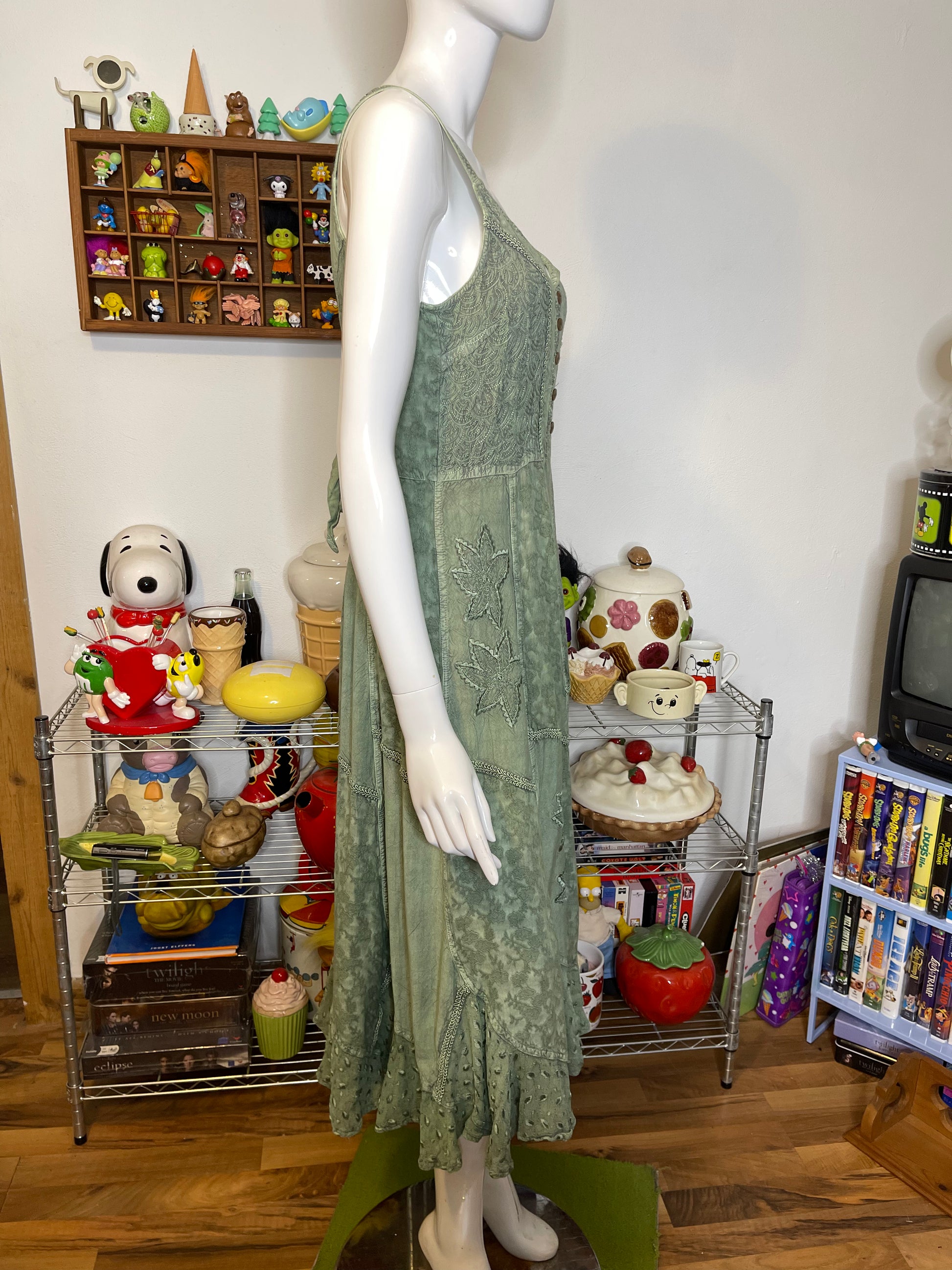 Green Boho Fairy Flowy Style Maxi Dress Sz M
