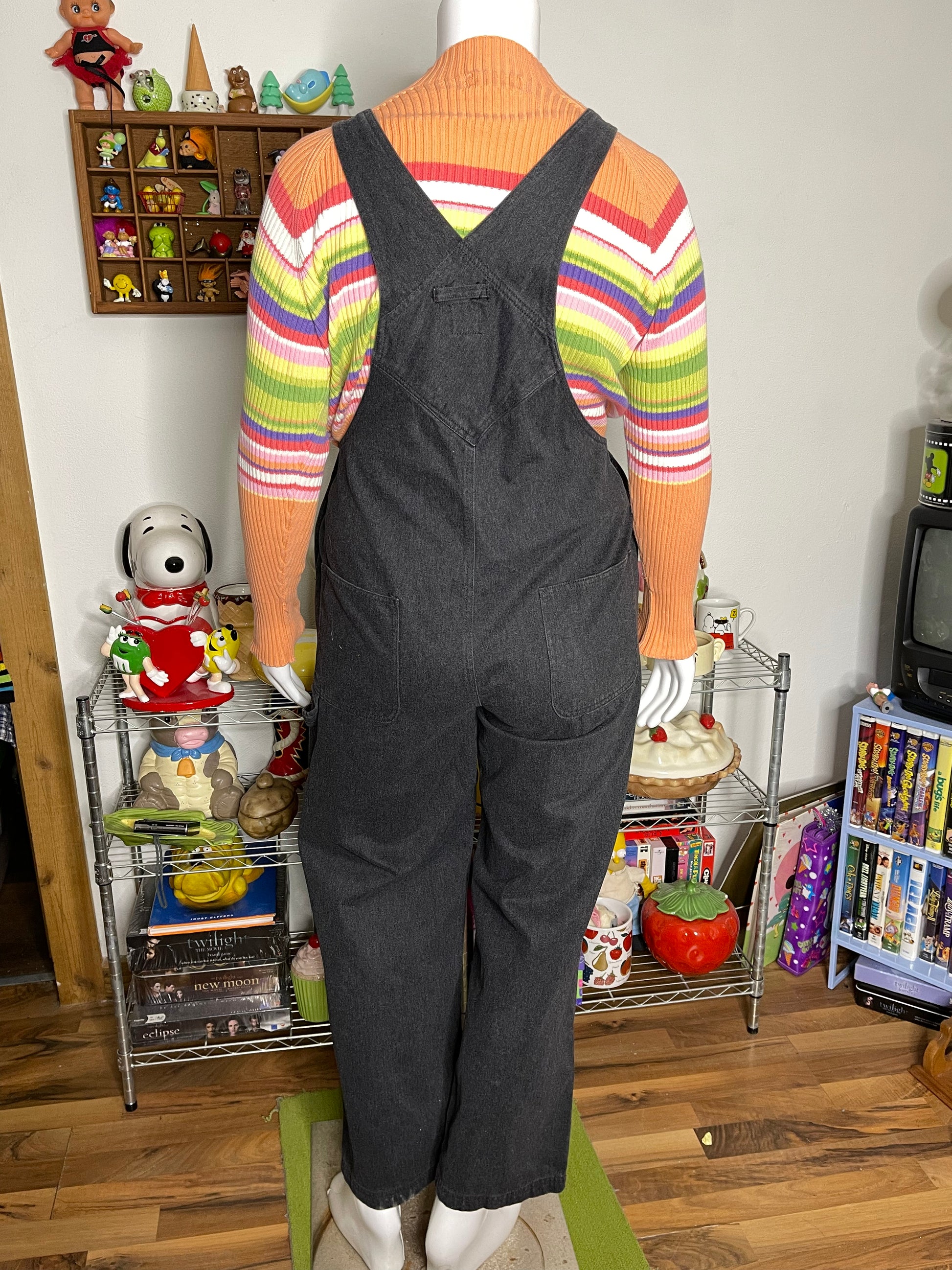 • In vintage preloved condition, the denim has wear, discoloration & scuffs. The only major flaw the overalls have is a scuff it has on the back (near the pocket).