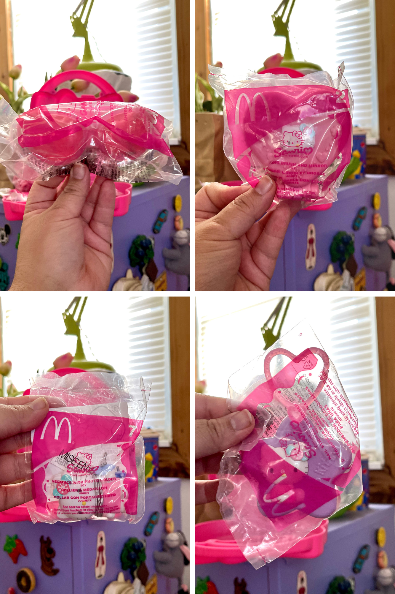 • The toys: Nail sticker dispenser, light up necklace toy, sunglasses with totes, folding brush and mirror & necklace with photo holder.