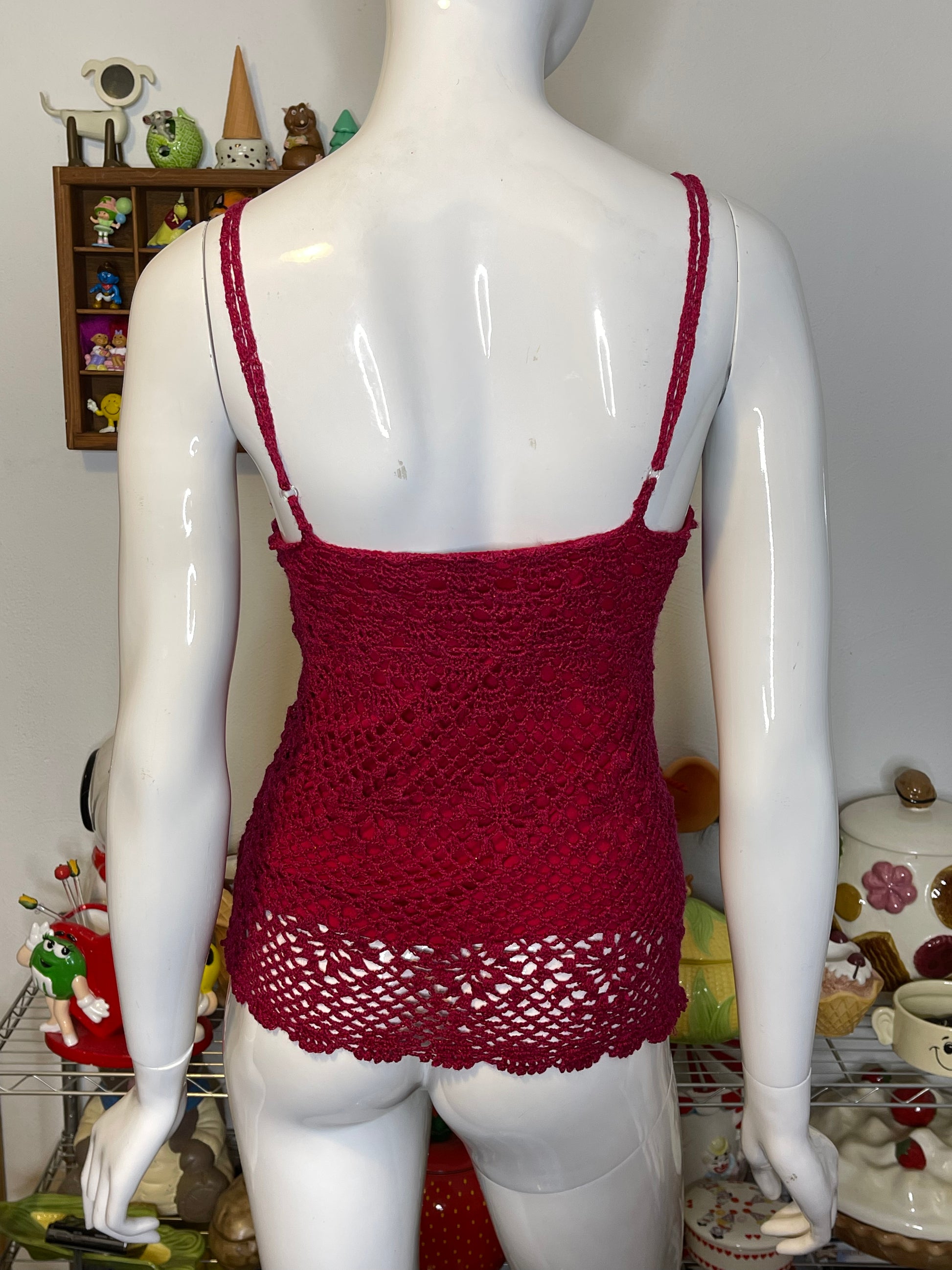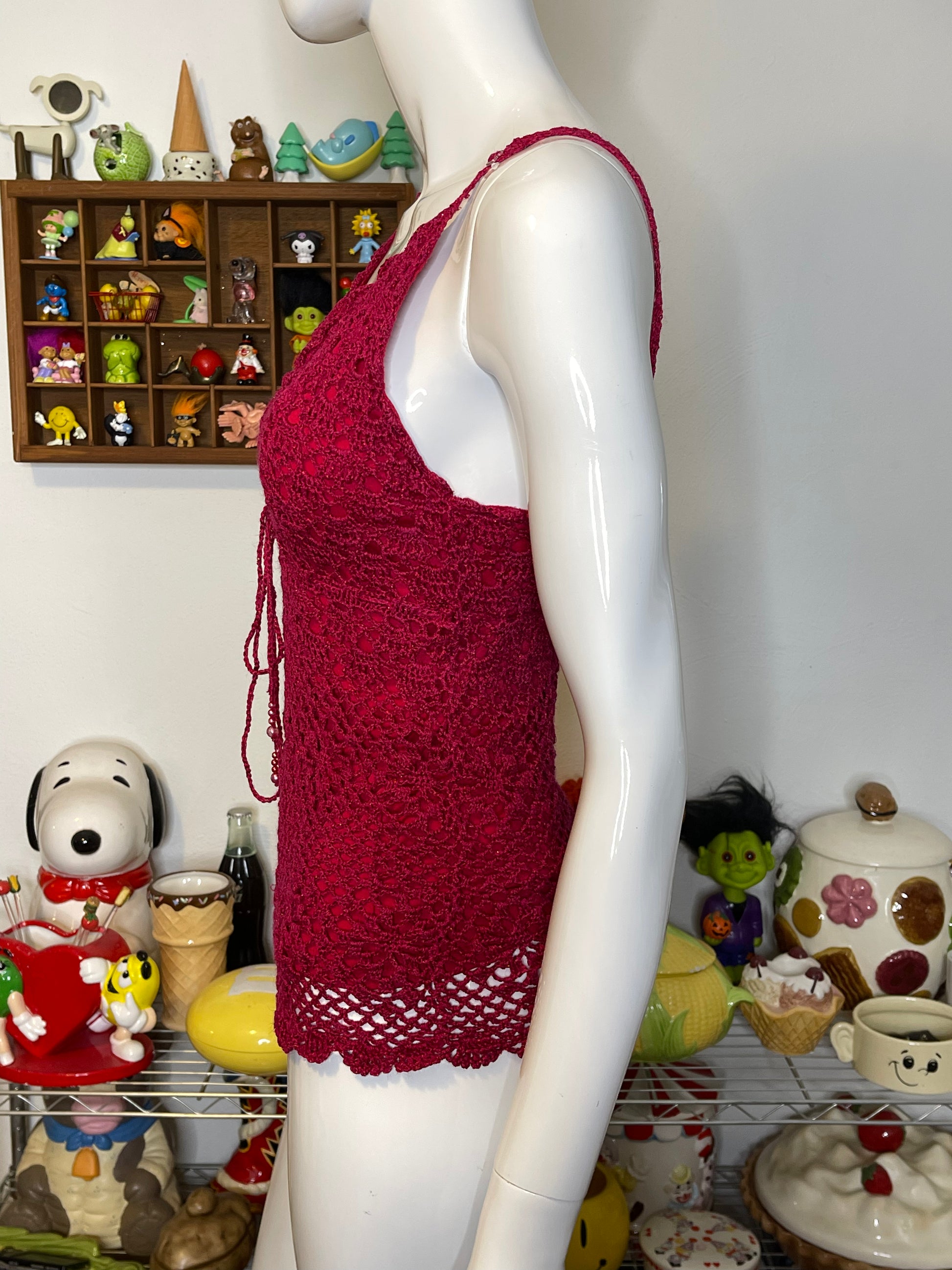 2000s Dark Hot Pink Beaded Crochet Tank Top