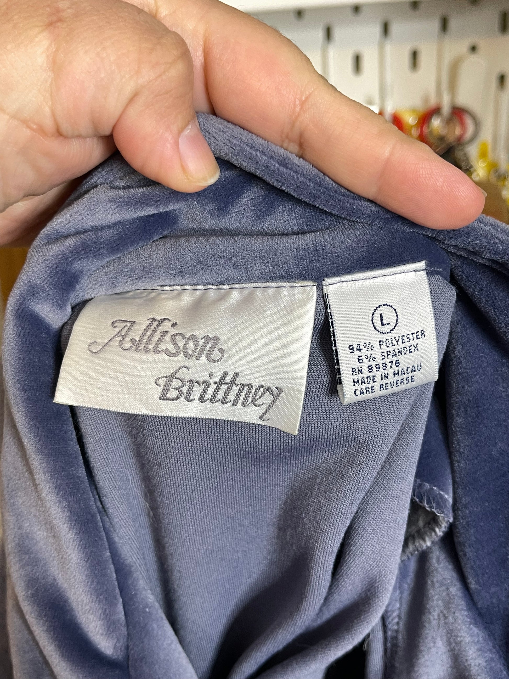 Vintage 90s Icy Blue Velour Plush Top Sz L