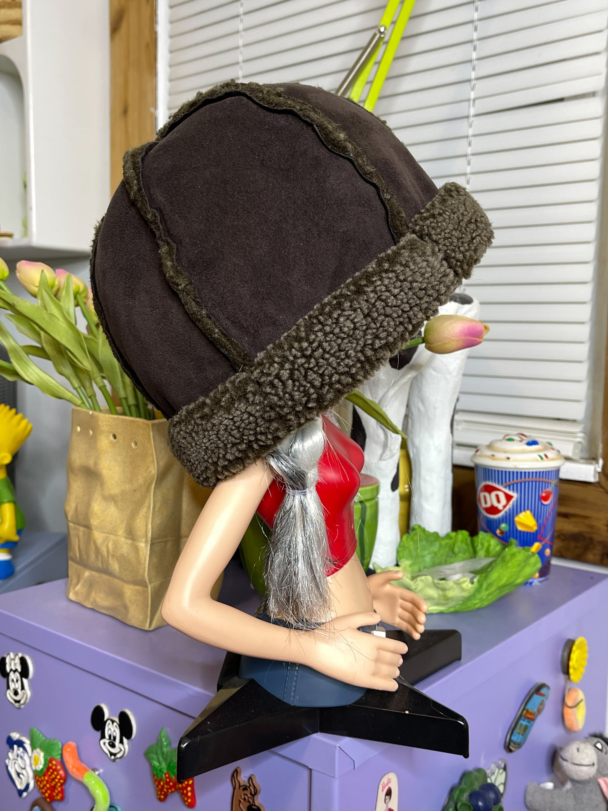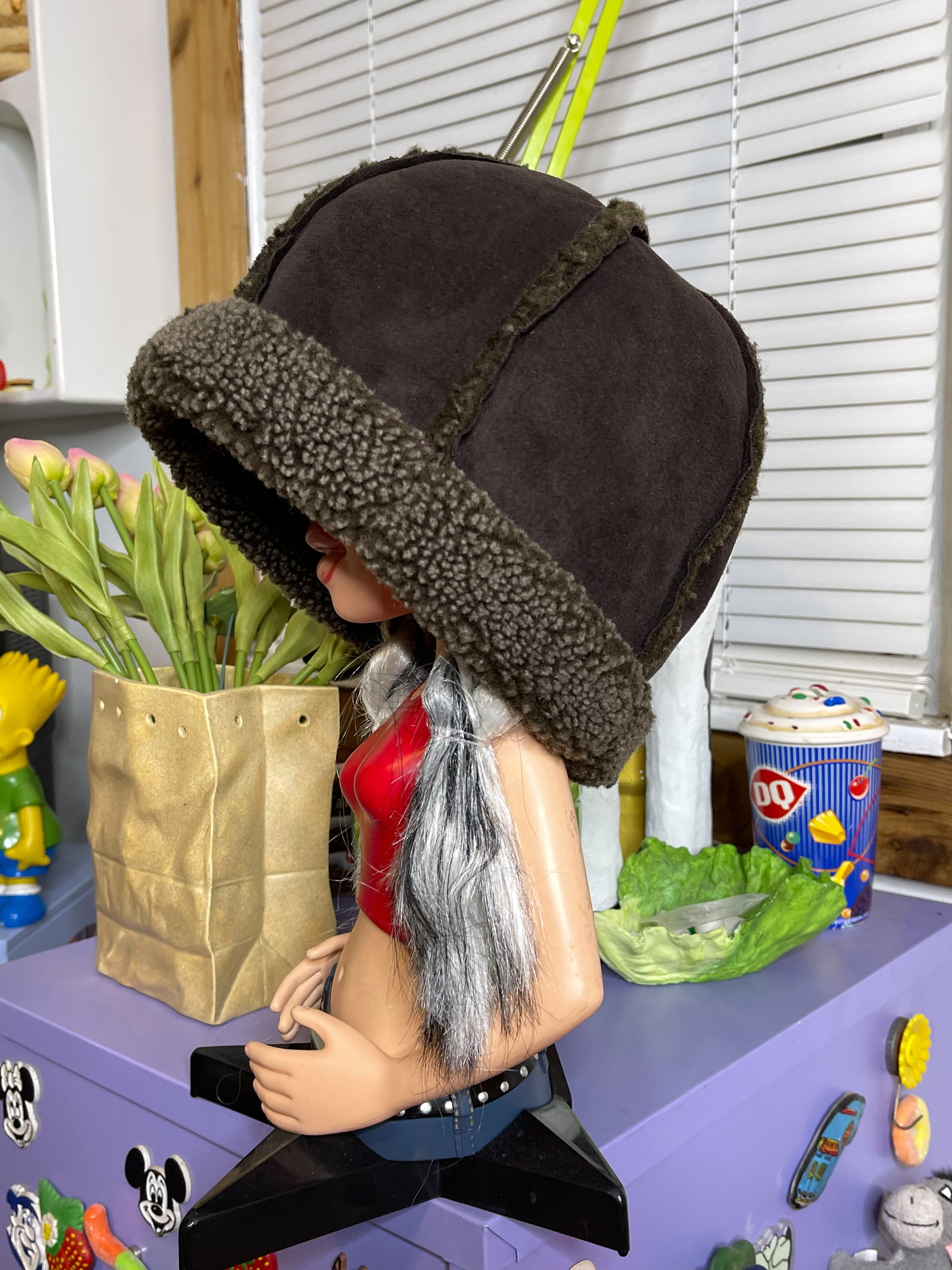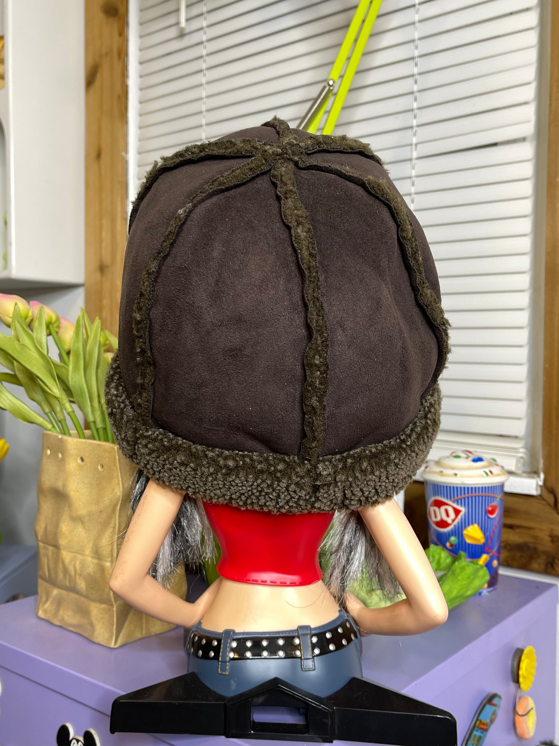 2000s L.L. Bean Brown Faux Shearling Sherpa Winter Hat Sz S/M