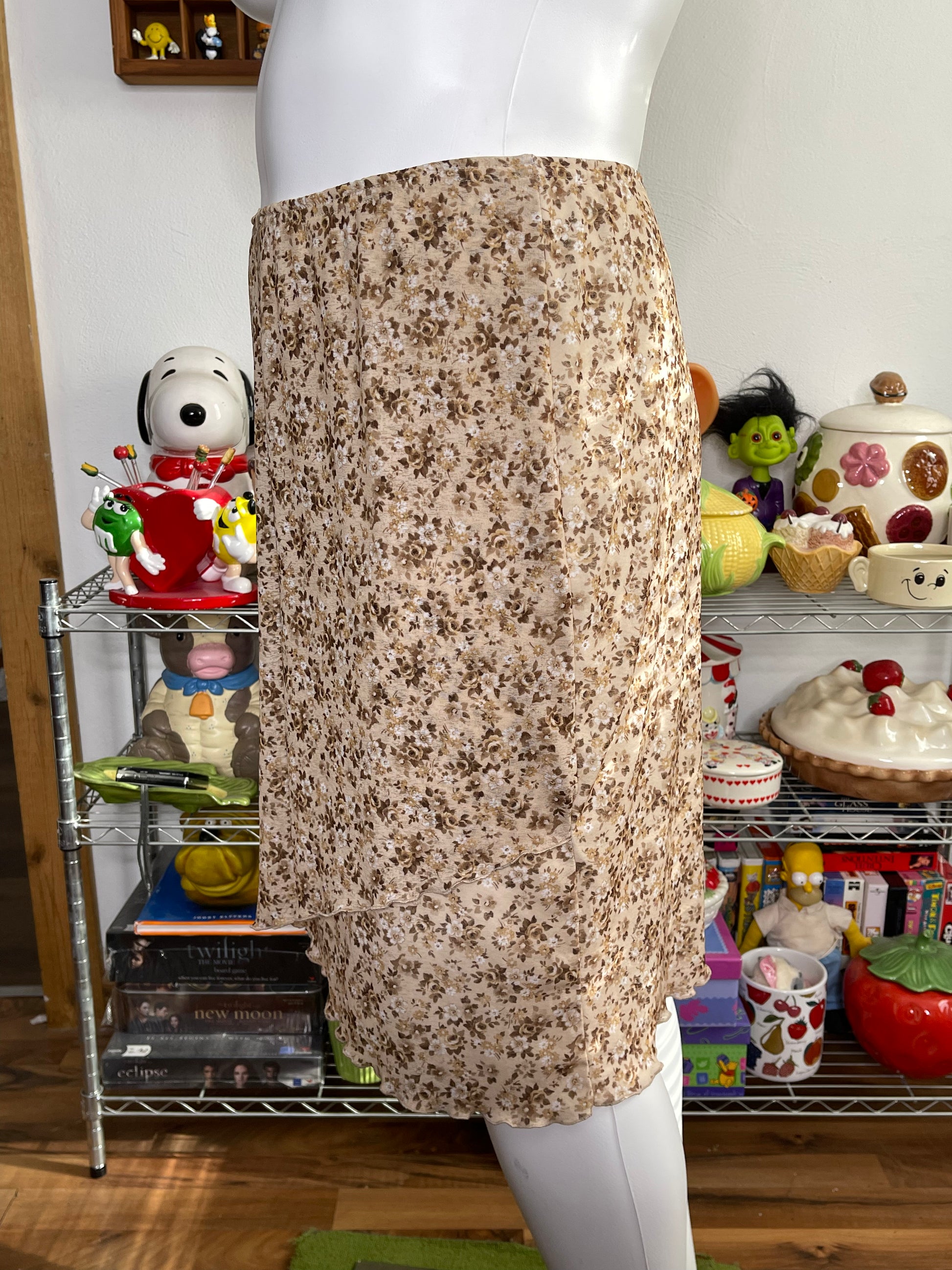 Vintage 90s Brown Floral Mirco Mesh Midi Skirt Sz 2X