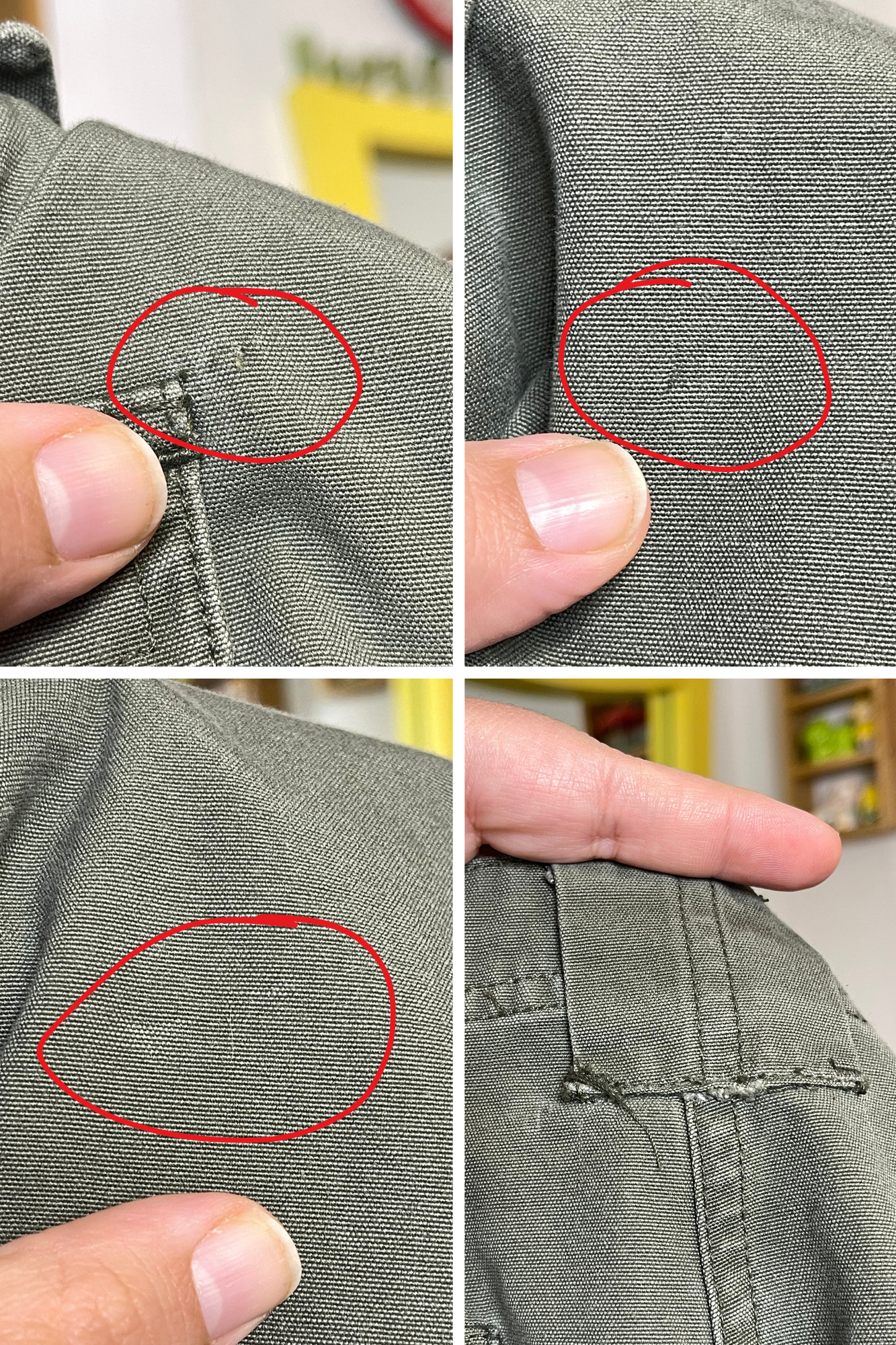 • In preloved worn condition, it has some wear but it doesn't have any major flaws. The fabric has no stretch. The fabric has a few scuffs. You are able to tighten the waist by using the buttons that are on the side of the waist.
