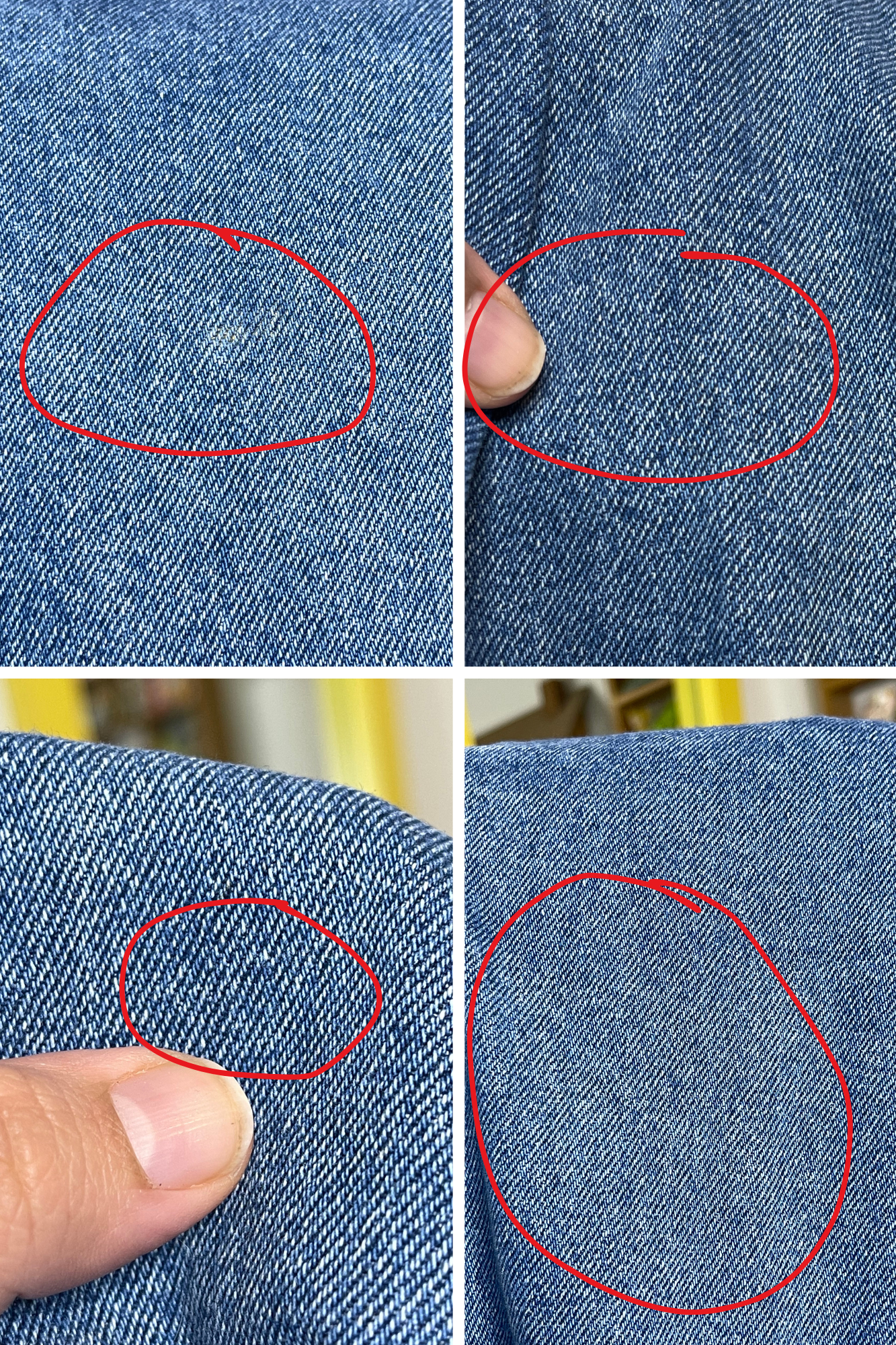 • Thick denim material, the overalls are In vintage preloved condition, the denim has wear, several stains, distressing, discoloration & scuffs. The front legs have several stains. Please see all photos.