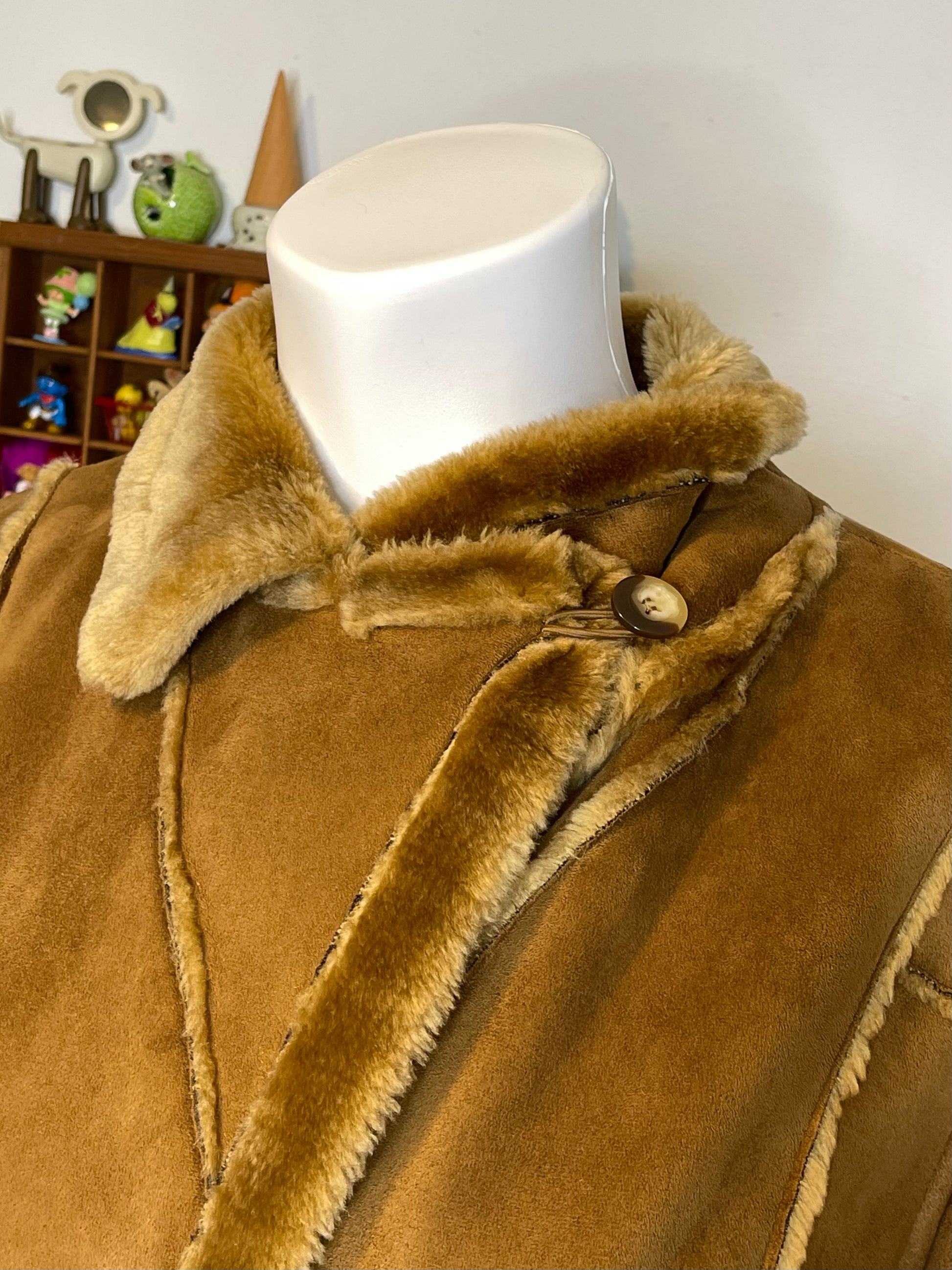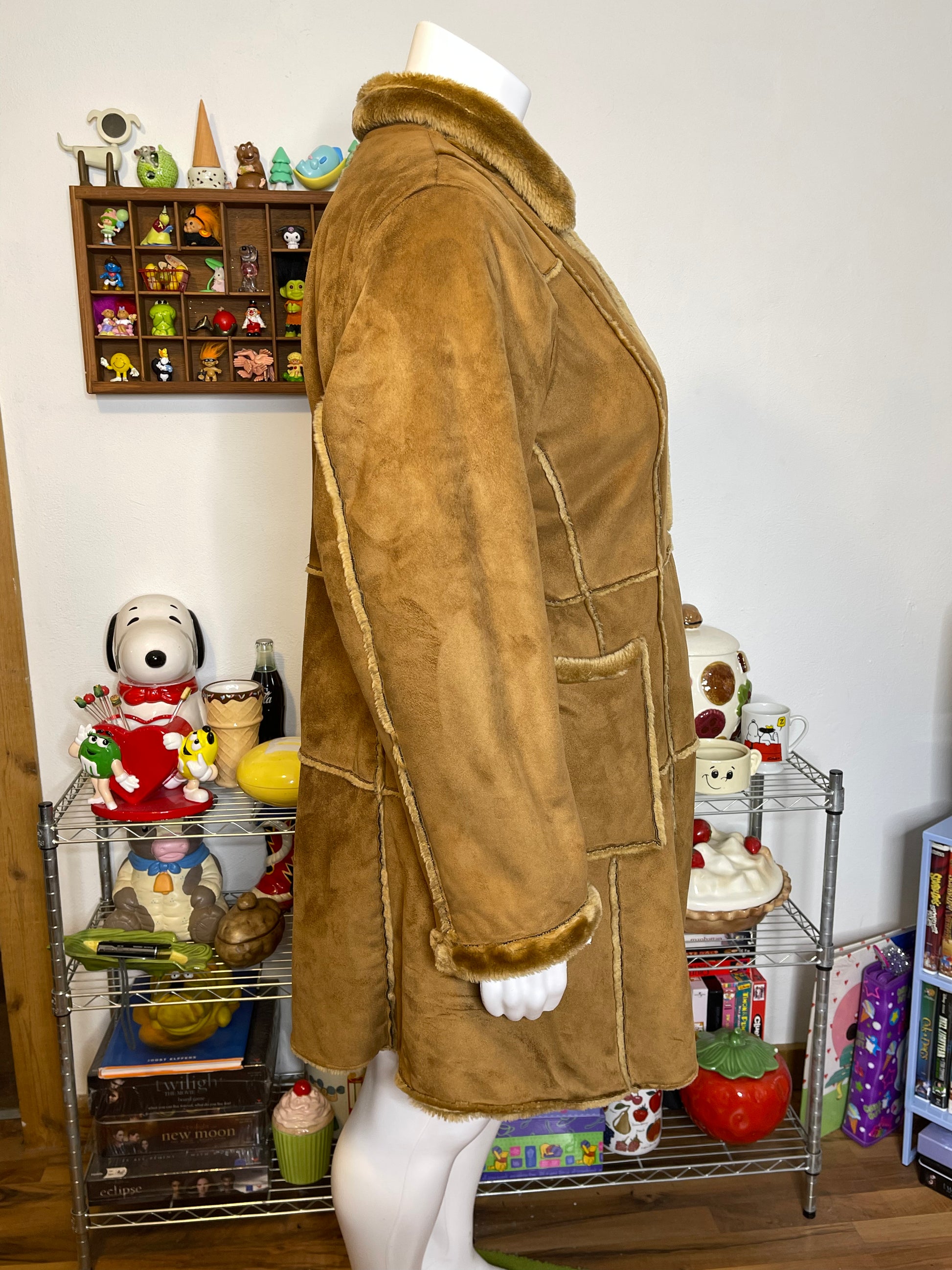 2000s Plus Size Faux Fur Suede Long Coat Sz 1X