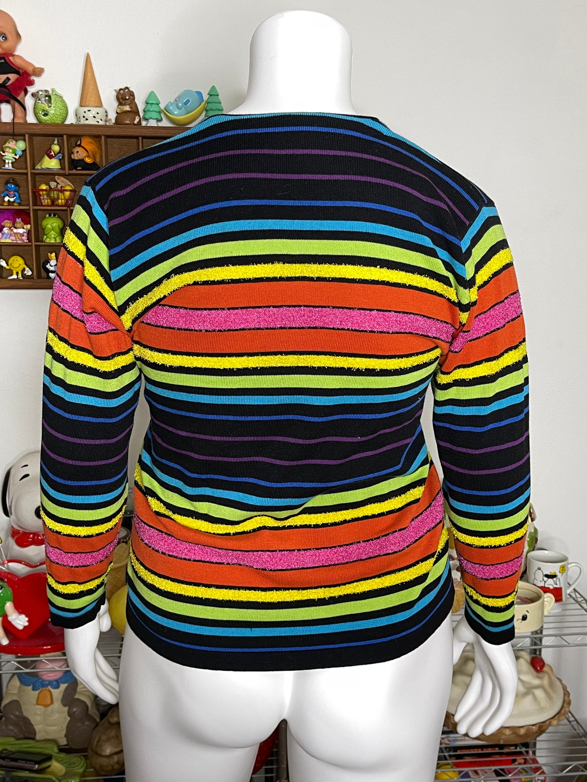 Vintage 90s Rainbow Fuzzy V-Neck Striped Cardigan Sz M/L