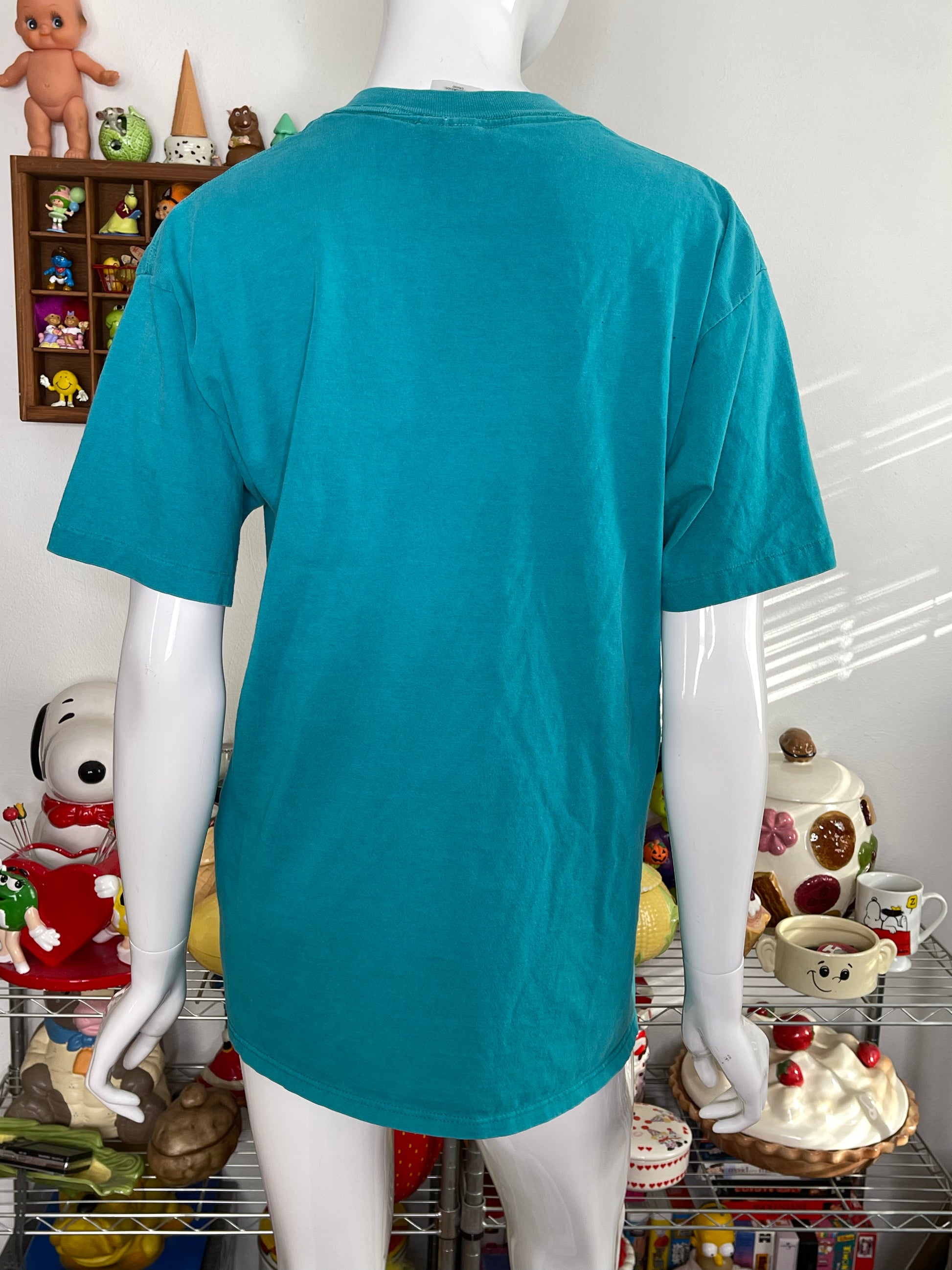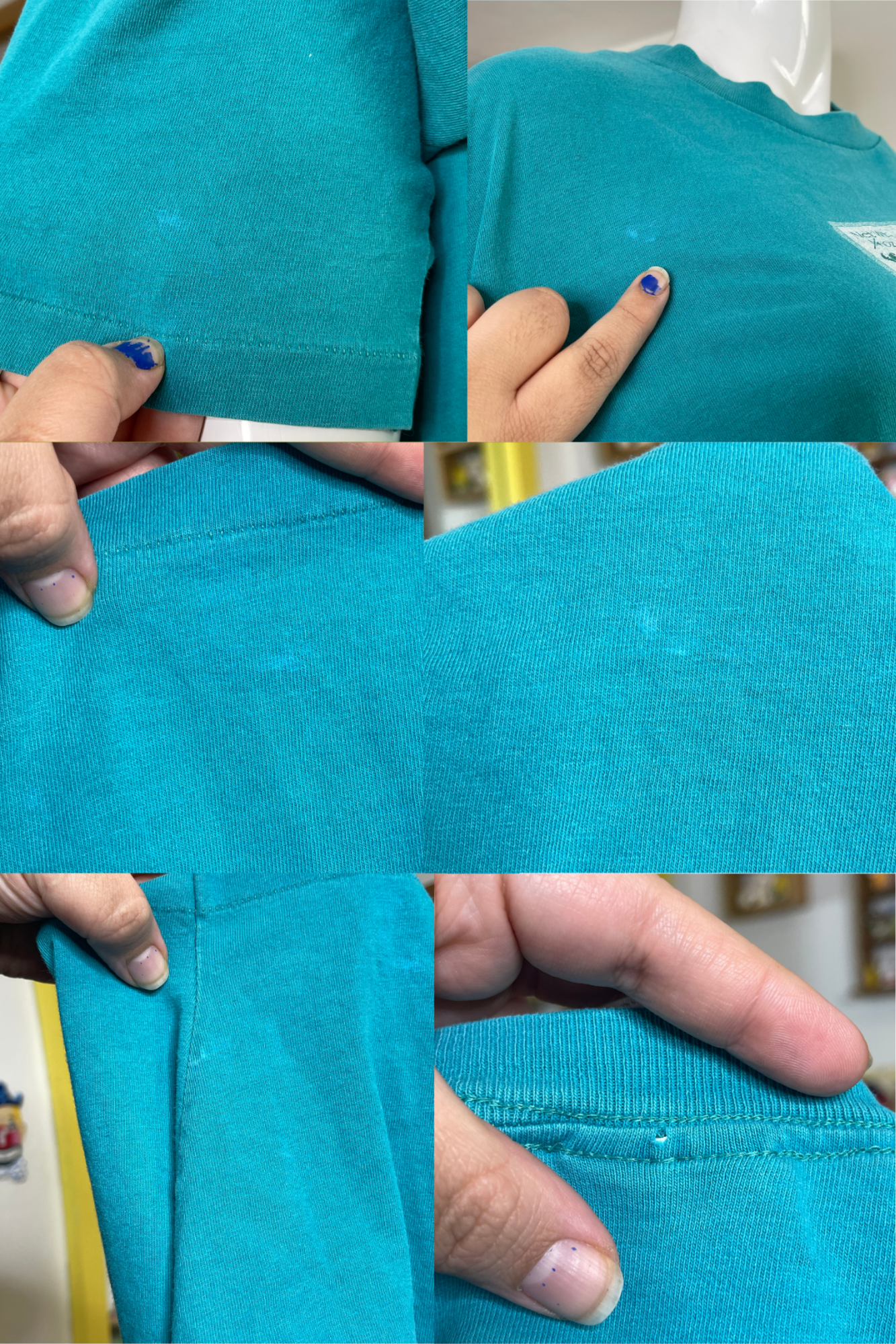 • This tee is in preloved condition, it's worn and faded. The tee also has several bleach stains (on sleeves & front of the tee). The back neck has a small hole, near the tag.
