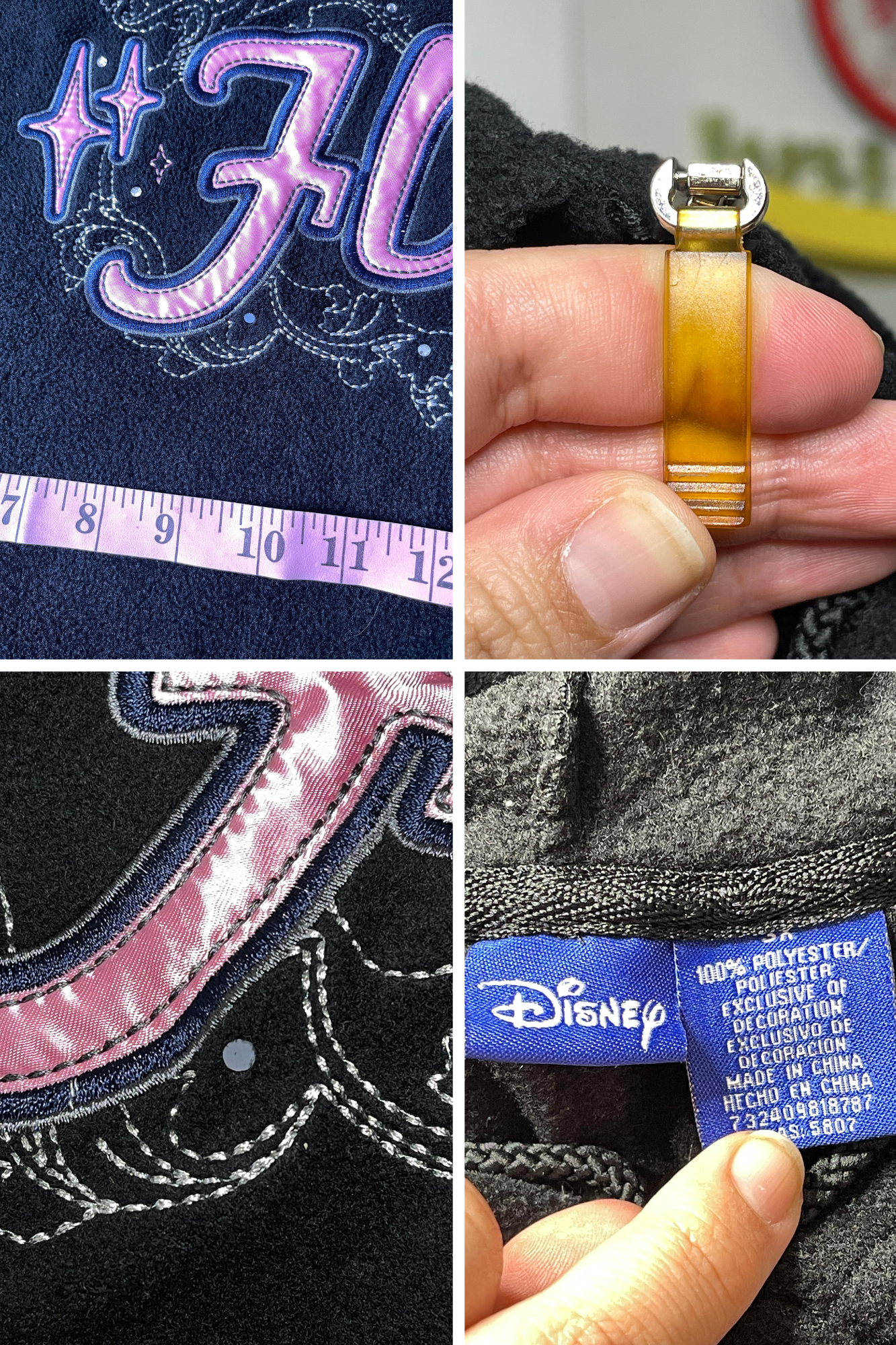 • This sweater is in preloved condition, the fleece is a bit worn and has a little pilling. The zipper pull is very yellow from age, the sweater is also missing a rhinestone.