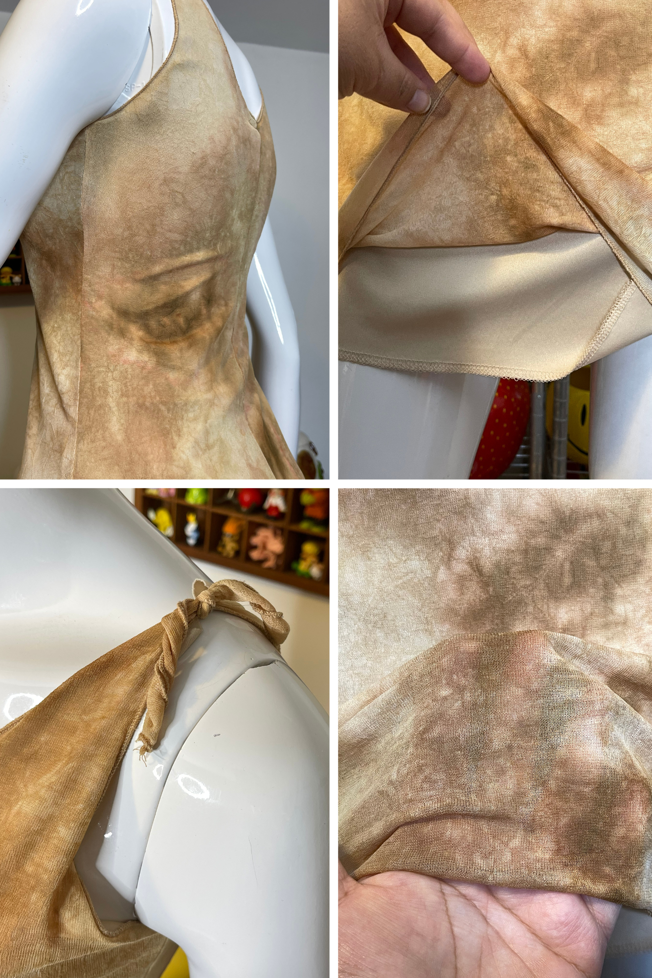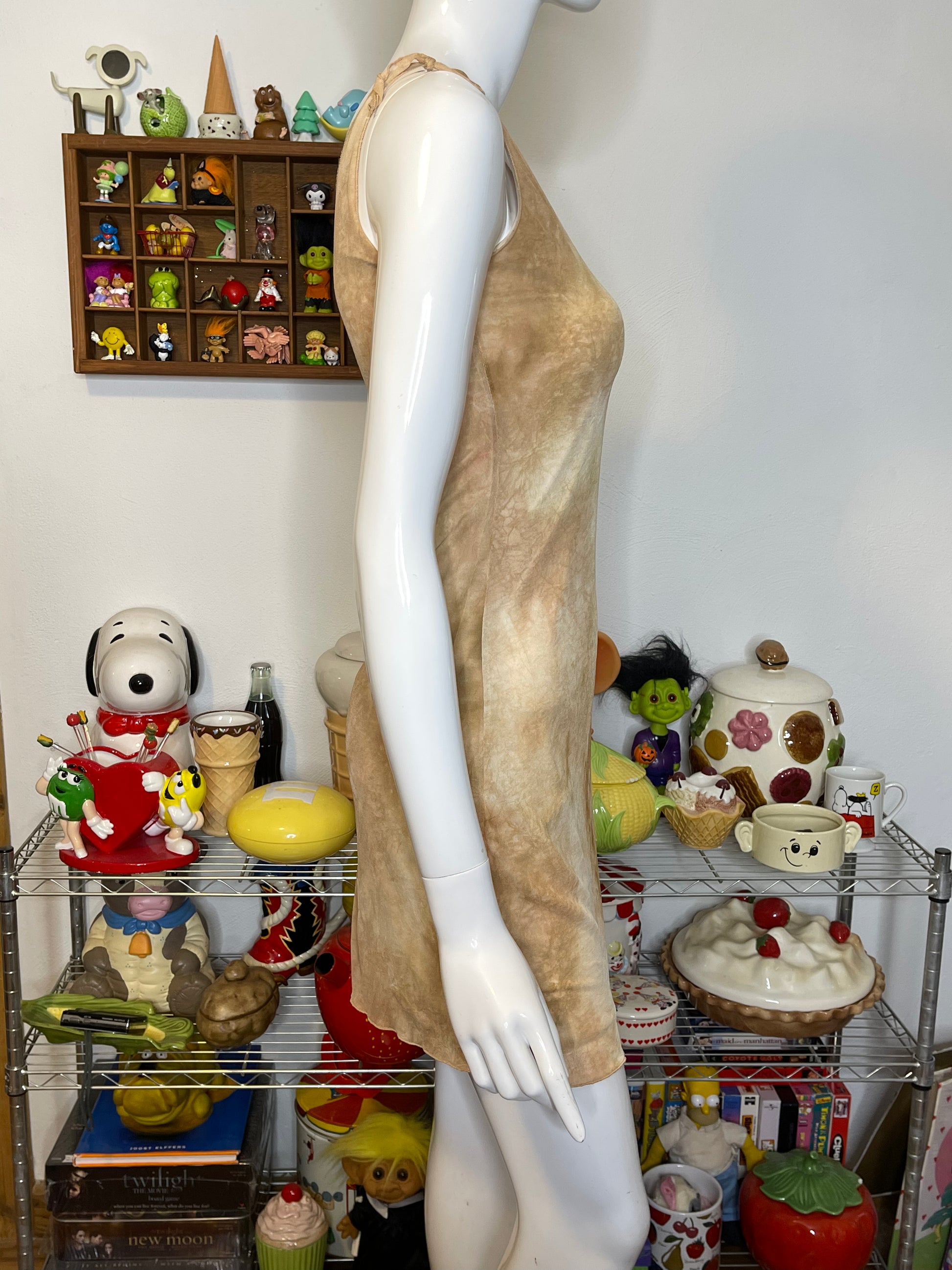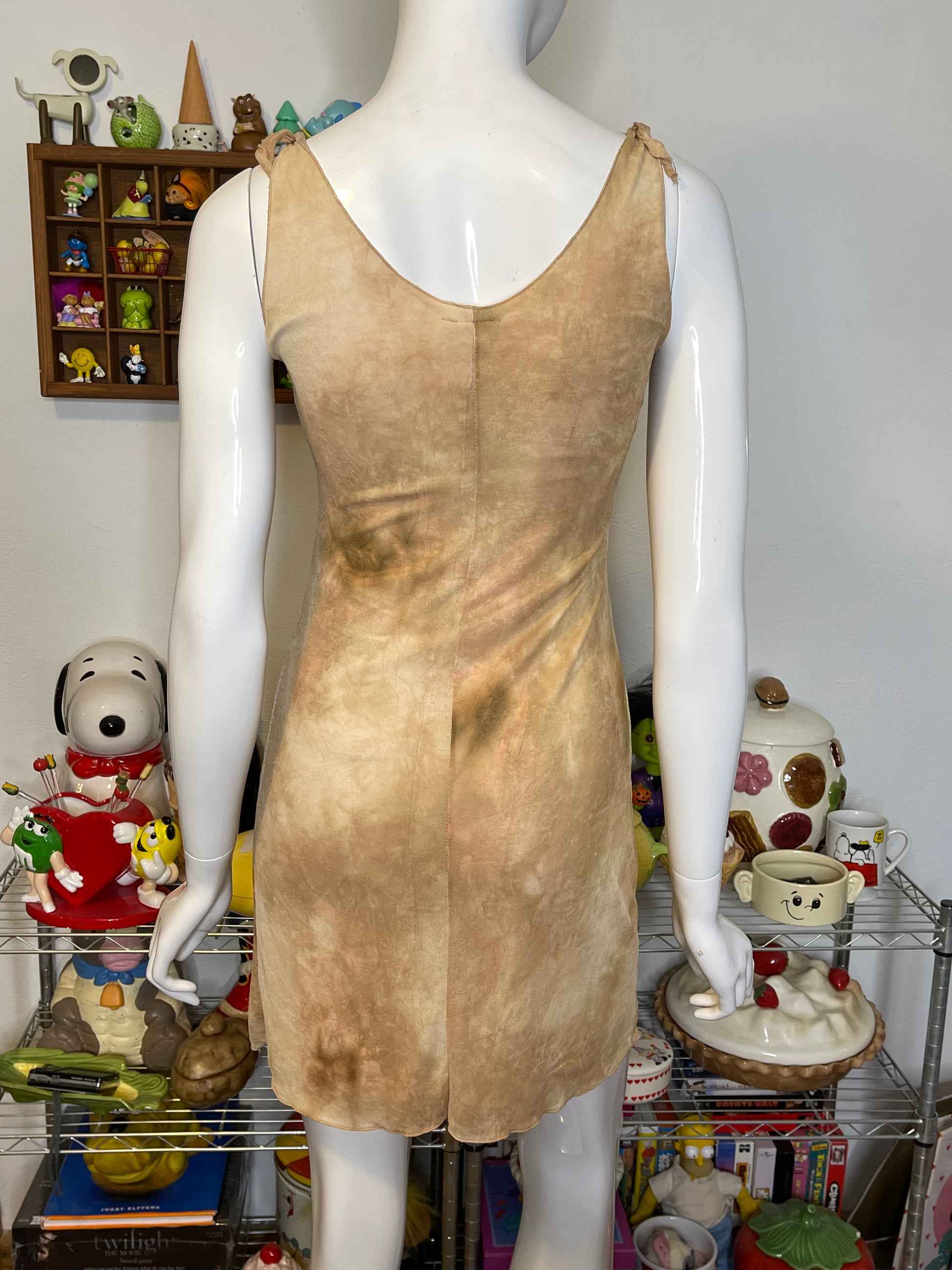 Vintage Tan Marble Tie-Dye Mirco Mesh Mini Dress Sz S