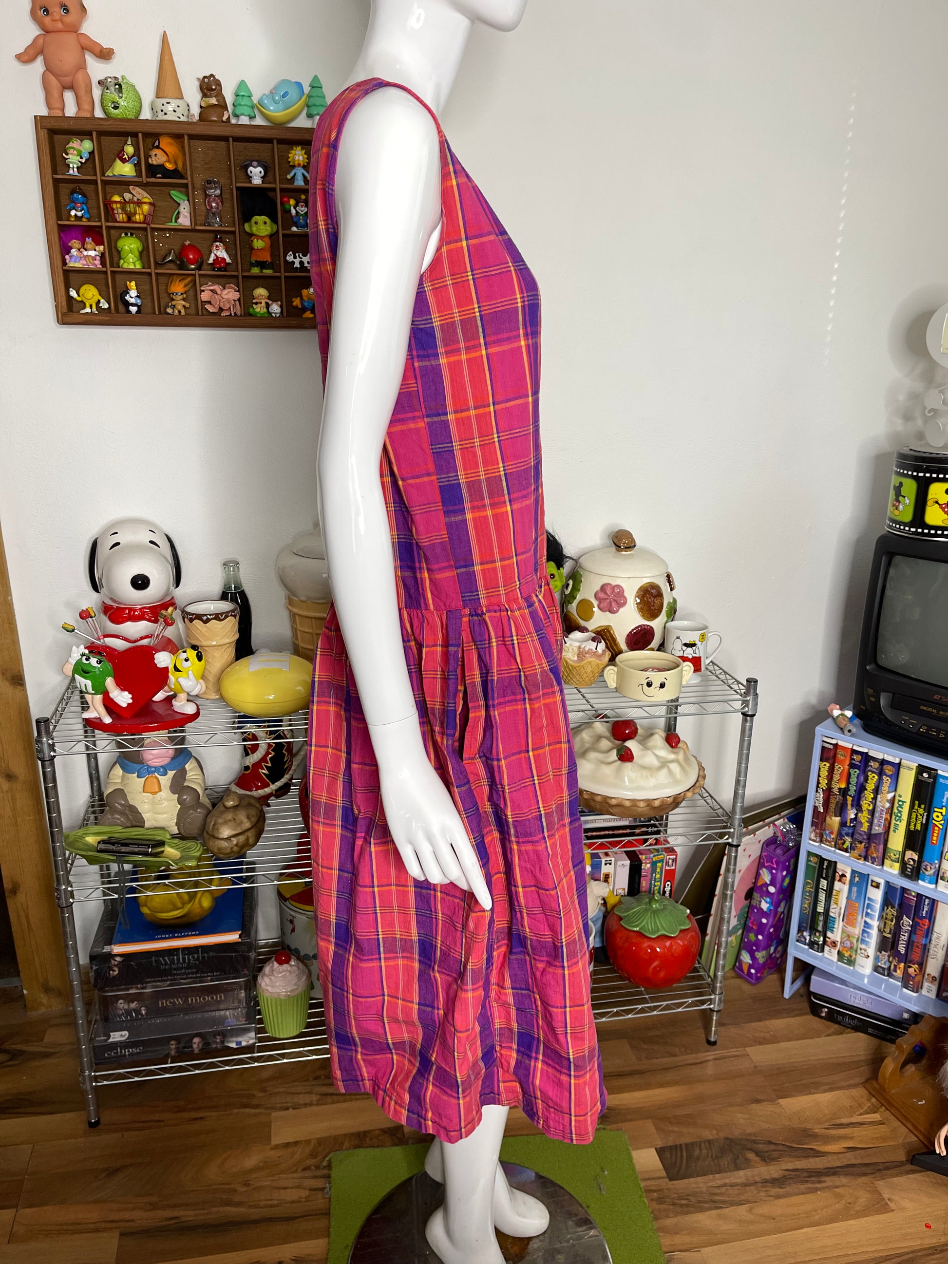 Vintage 90s Colorful Flowy Oversized Plaid Dress Sz M/L