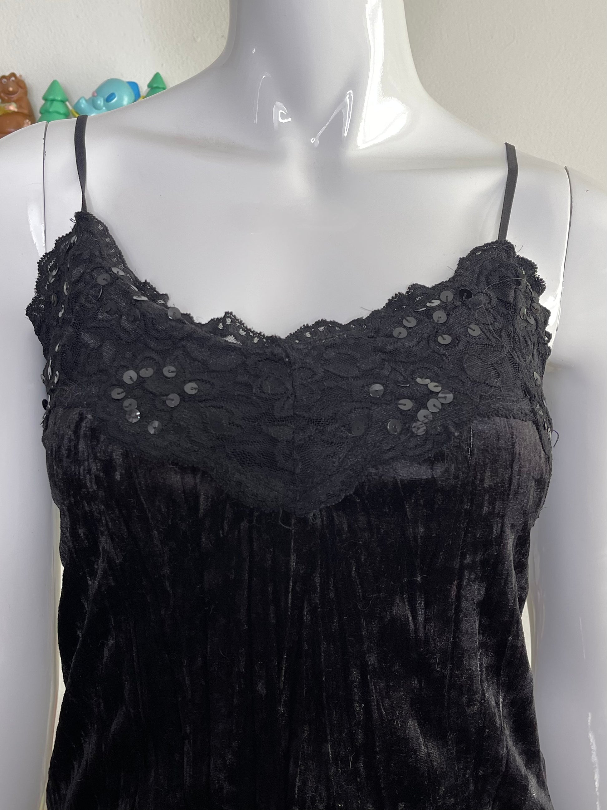 Vintage 2000s Black Sequin, Lace & Velvet Cami Sz M