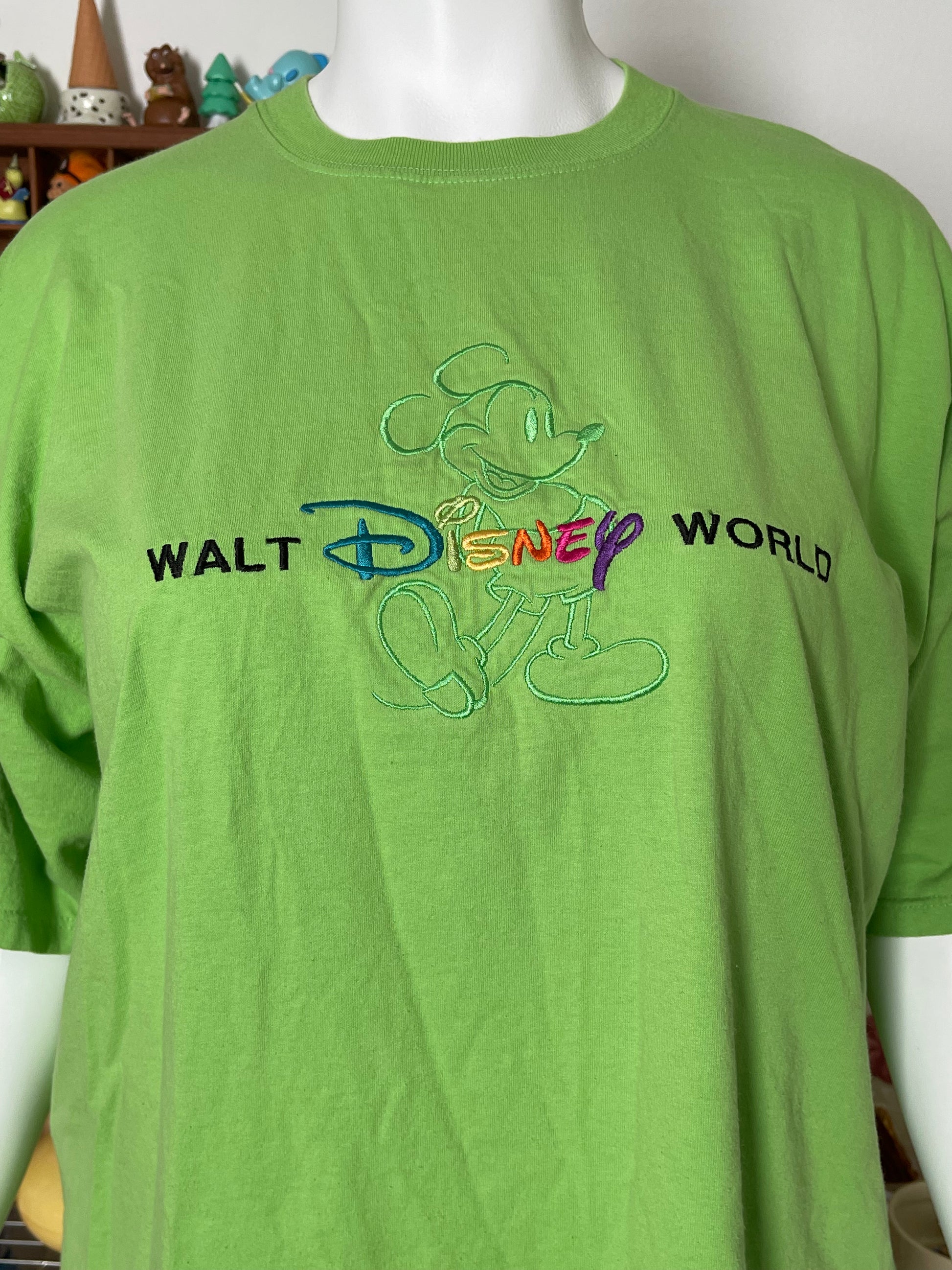 Vintage 90's Bright green with rainbow embroidery Walt Disney World tee