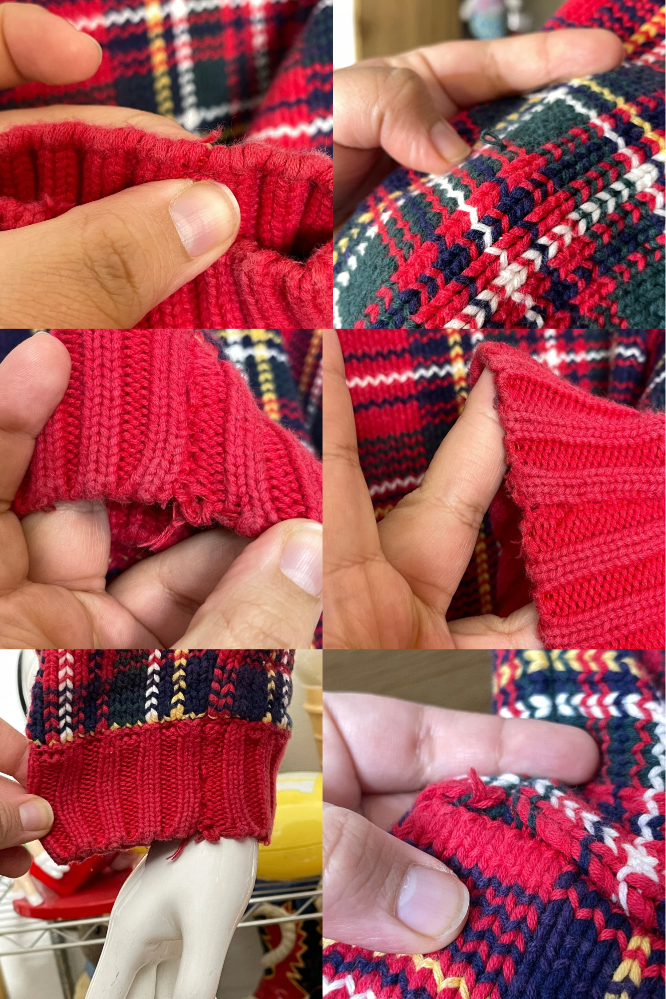 • This sweater is in preloved condition, its faded and worn. The sweater also has a bit of pilling and distressing. The sweater also has faded areas and loose knit areas.