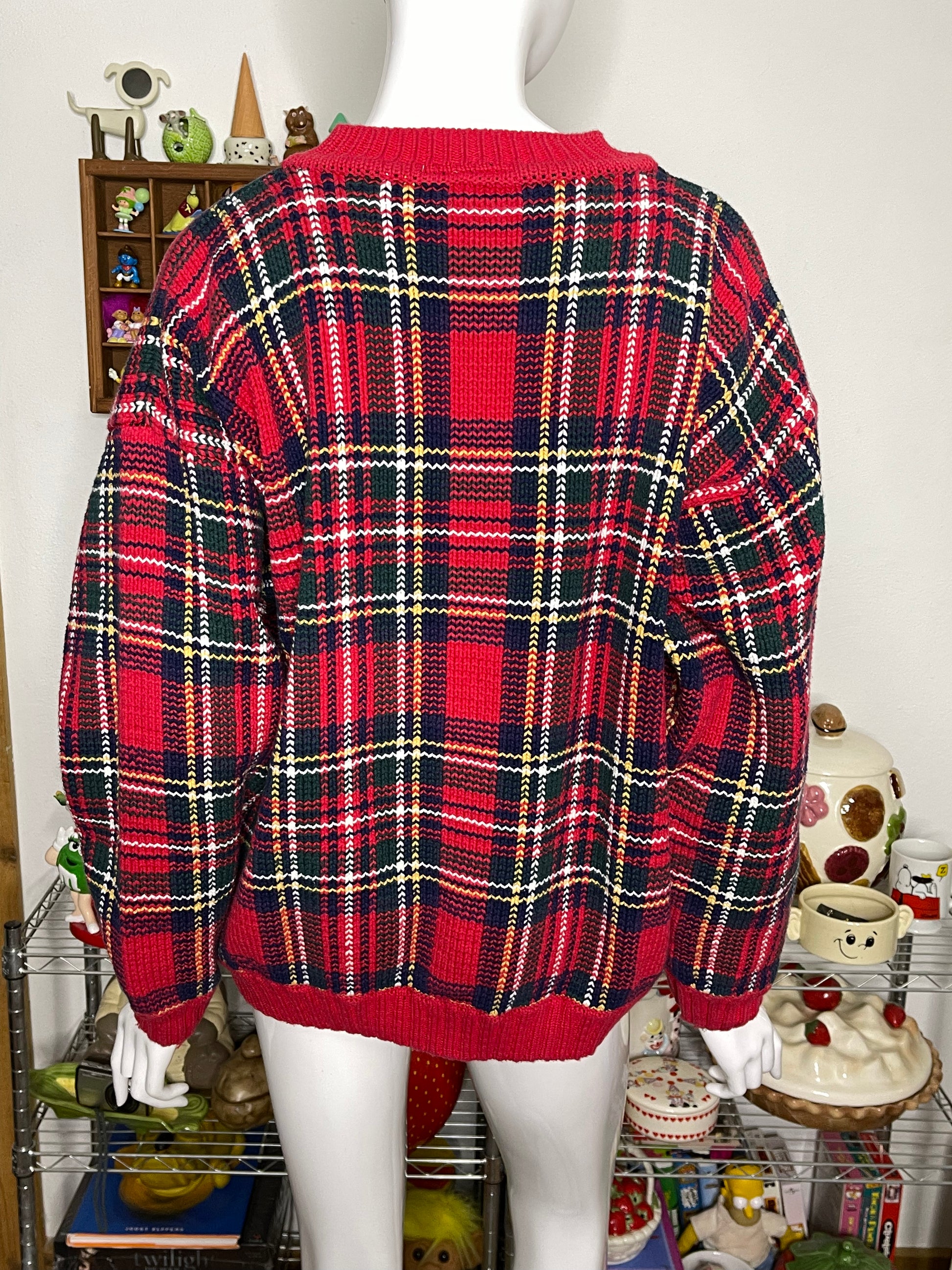 Vintage chunky plaid knit oversized sweater sz L