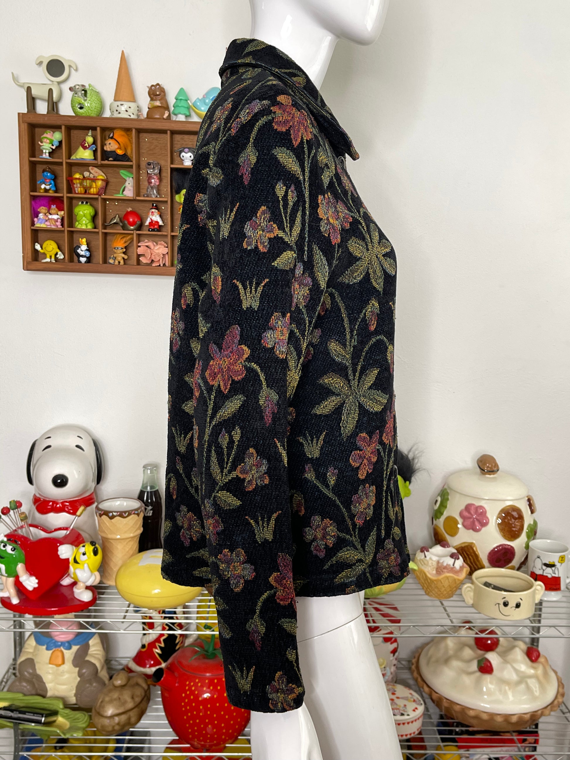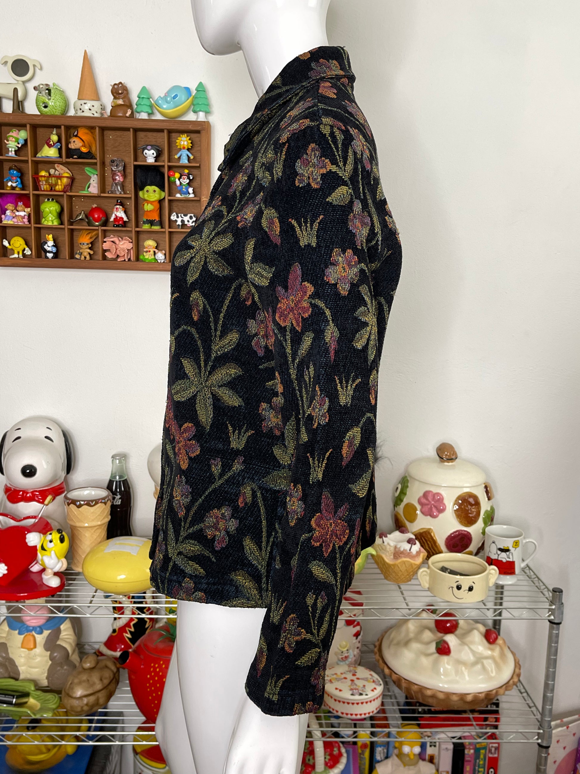 Vintage 90s Black Floral Tapestry Chenille Jacket