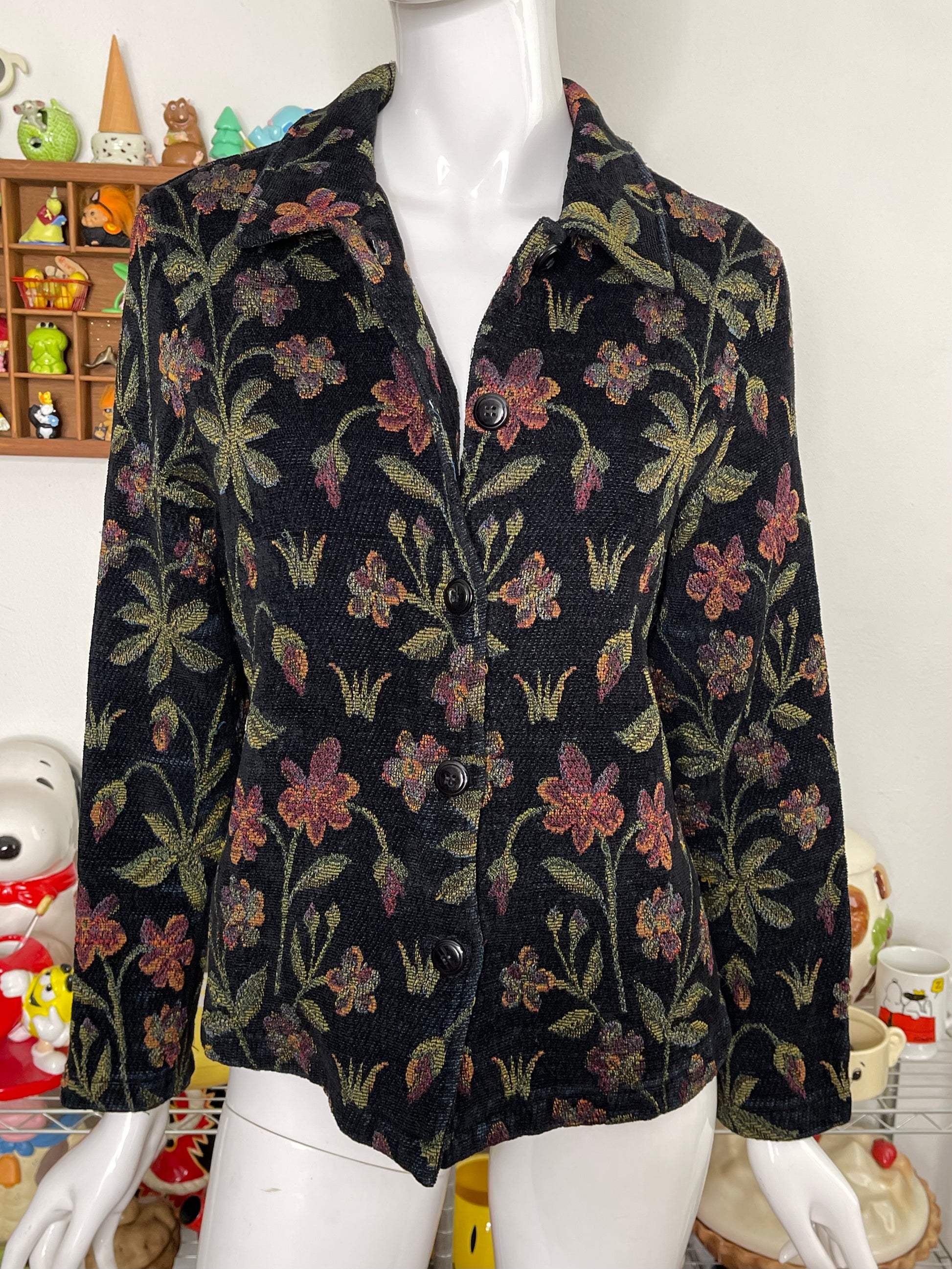 Vintage Black Floral Tapestry Chenille Jacket Sz S
