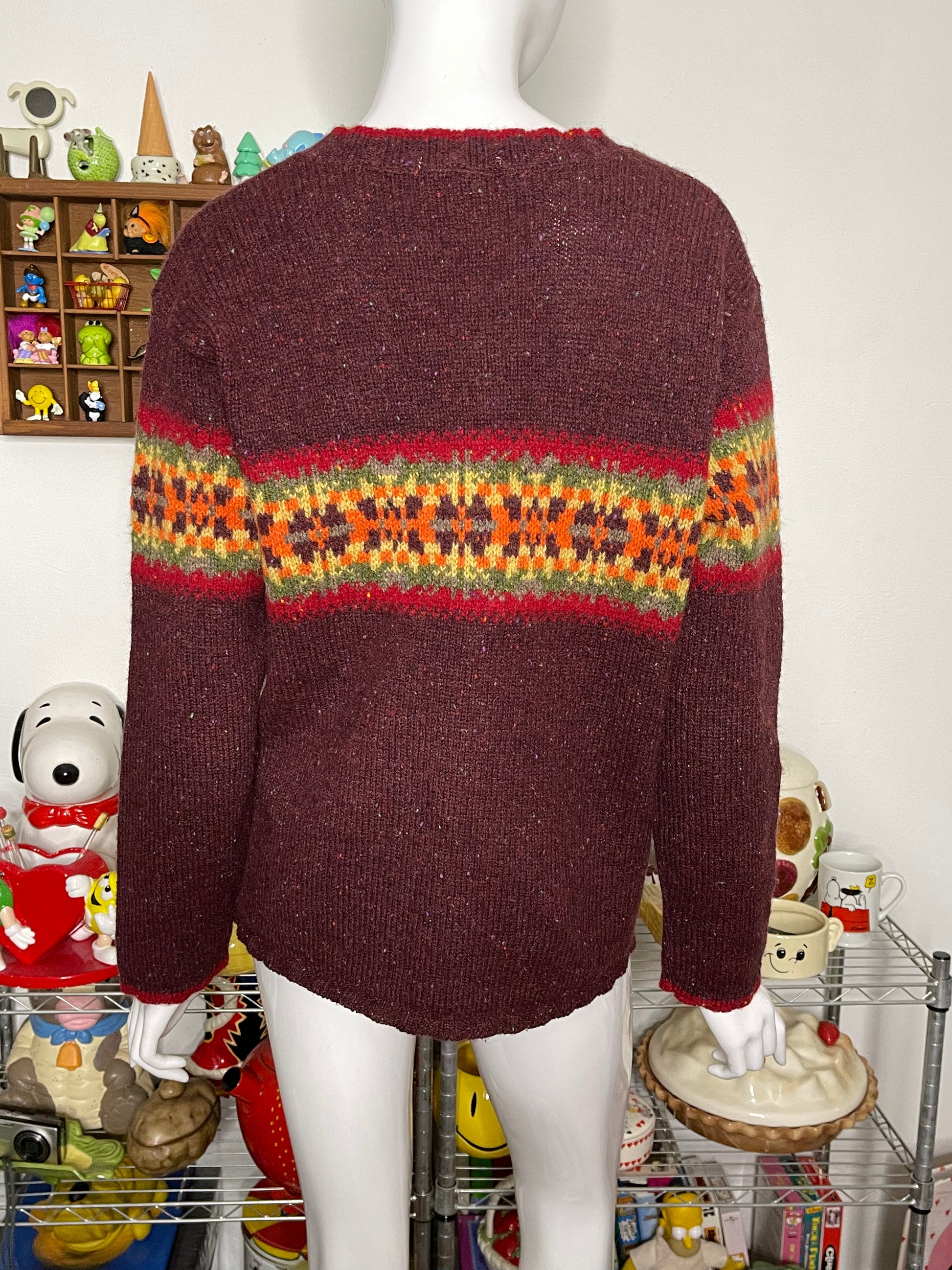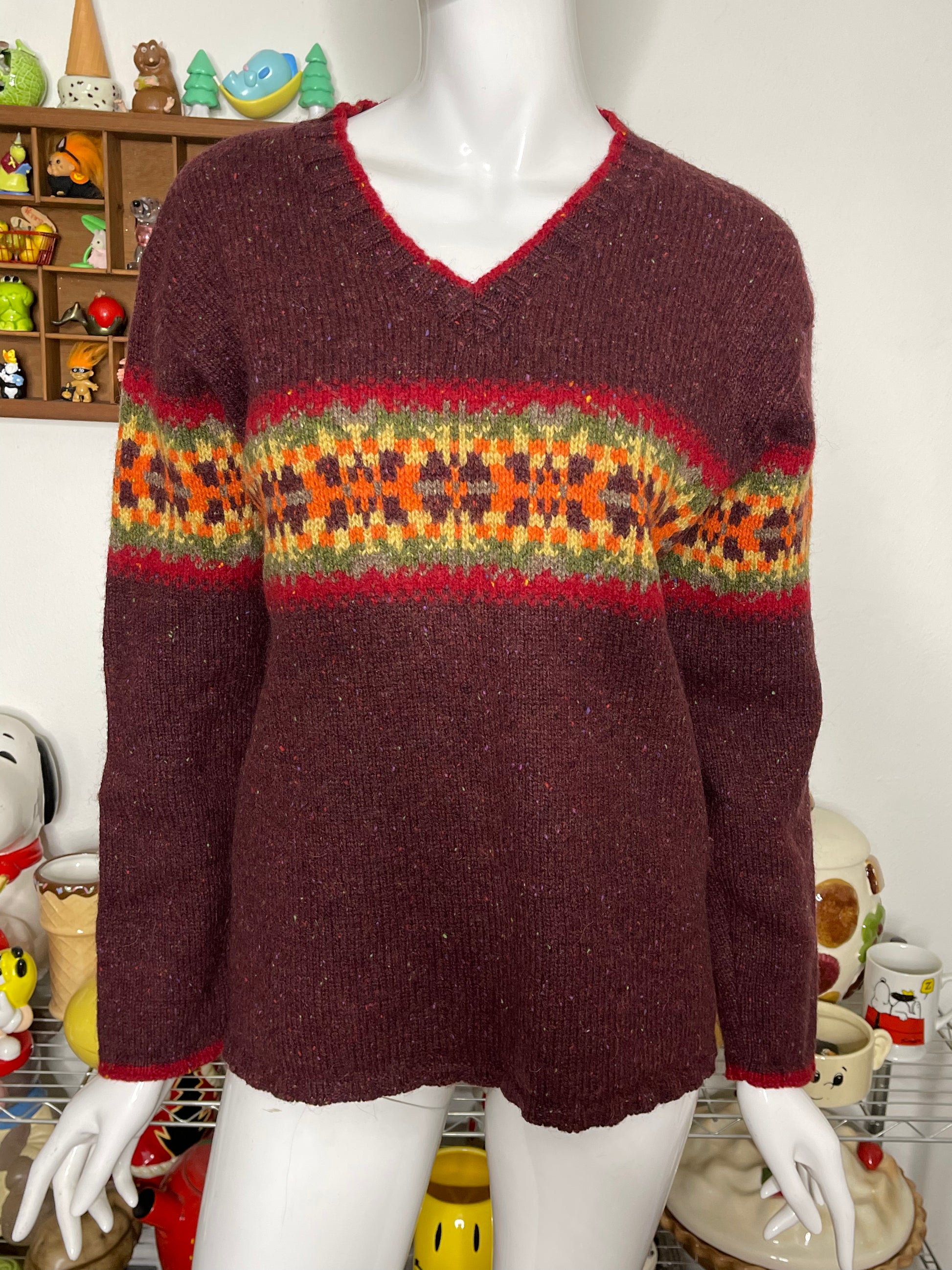 Vintage fall multicolor wool blend knit v-neck sweater sz S/P