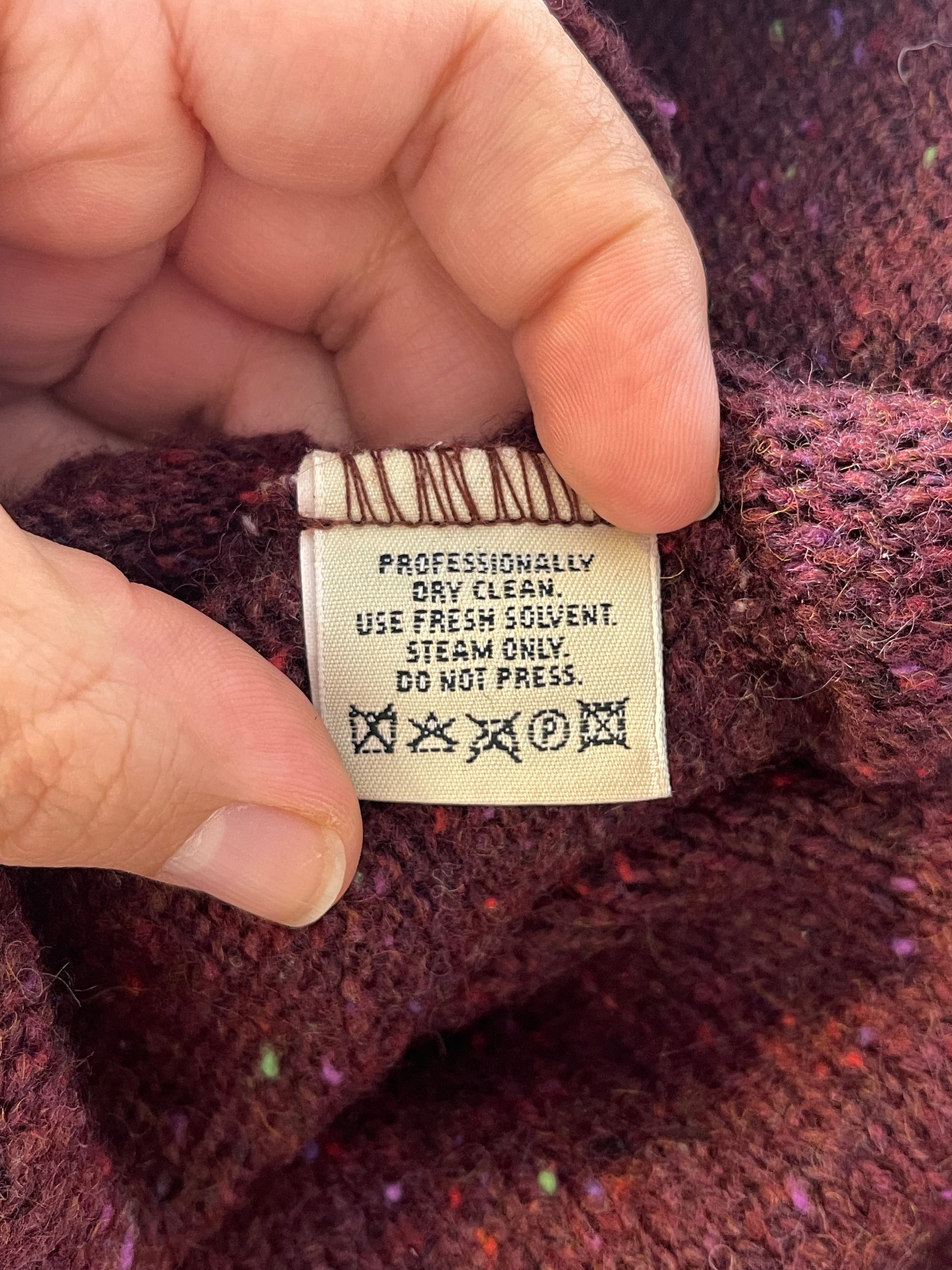 • The fabric is sorta itchy, I do not recommend it for someone with sensitive skin. This sweater is in preloved condition, it has small scuffs and loose knit areas. It also has light pilling.