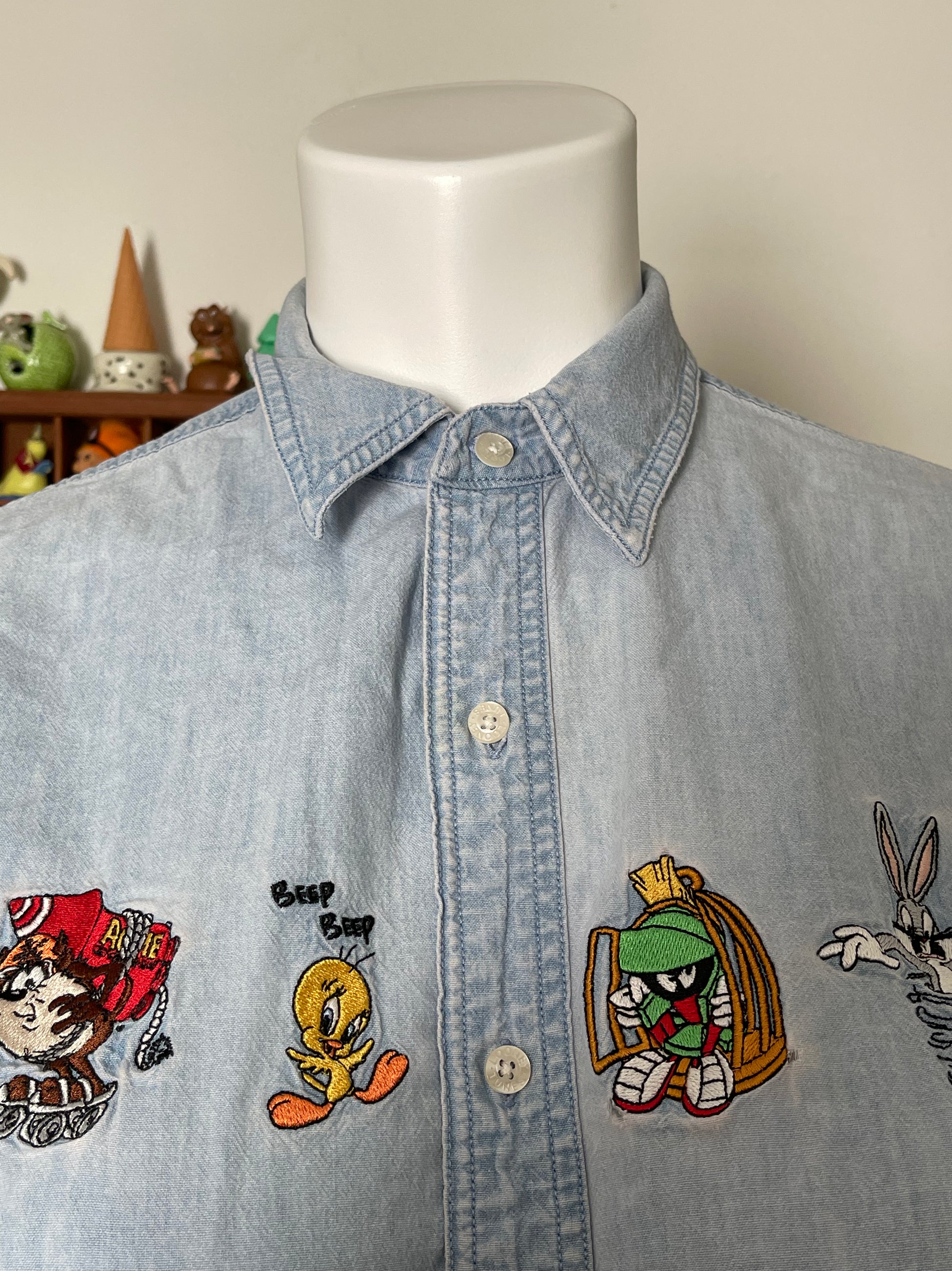 Vintage Looney Tunes light weight denim button down collared long sleeve