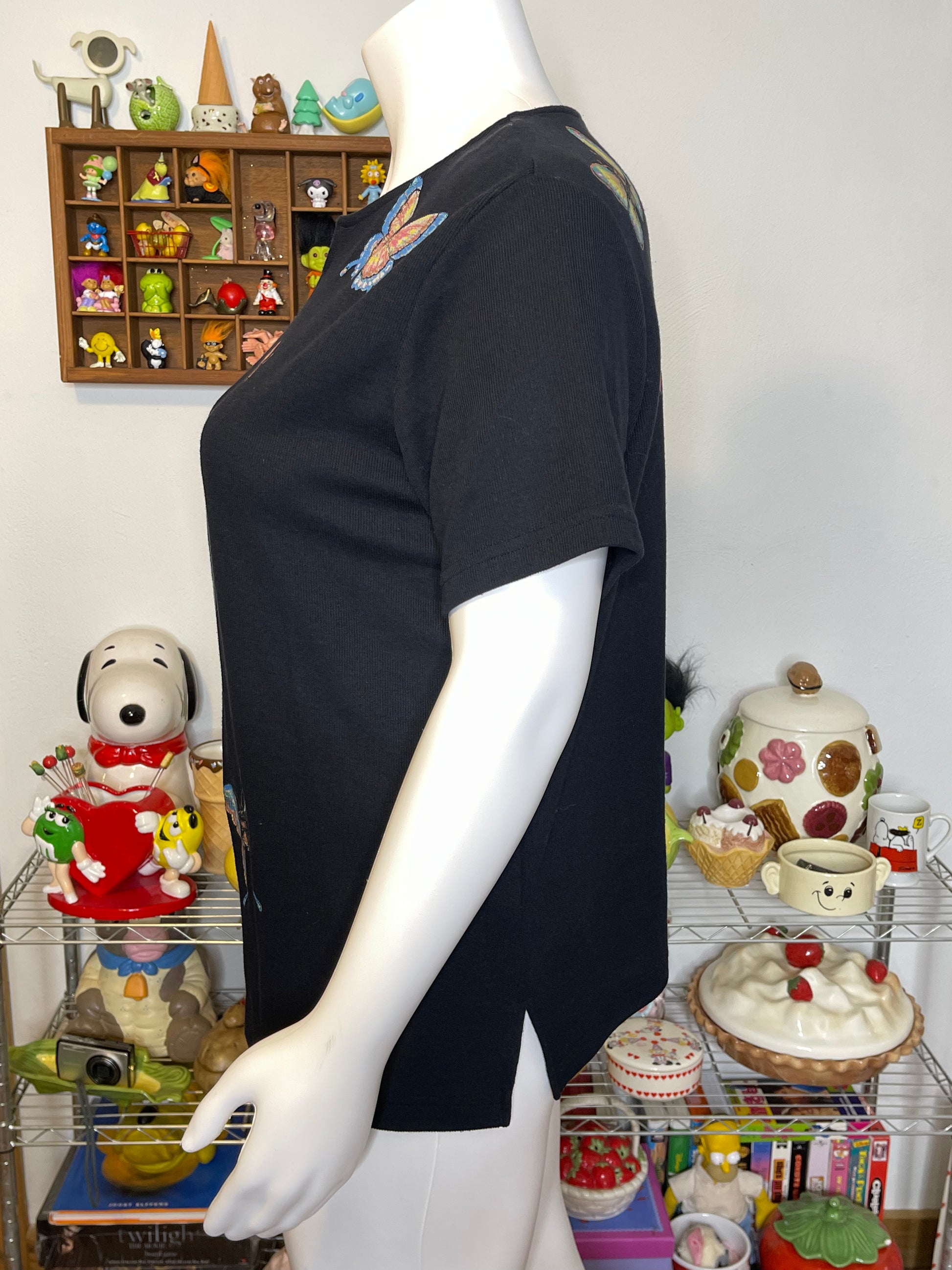 Vintage 90s Plus Size Painted Butterfly Ribbed Top
