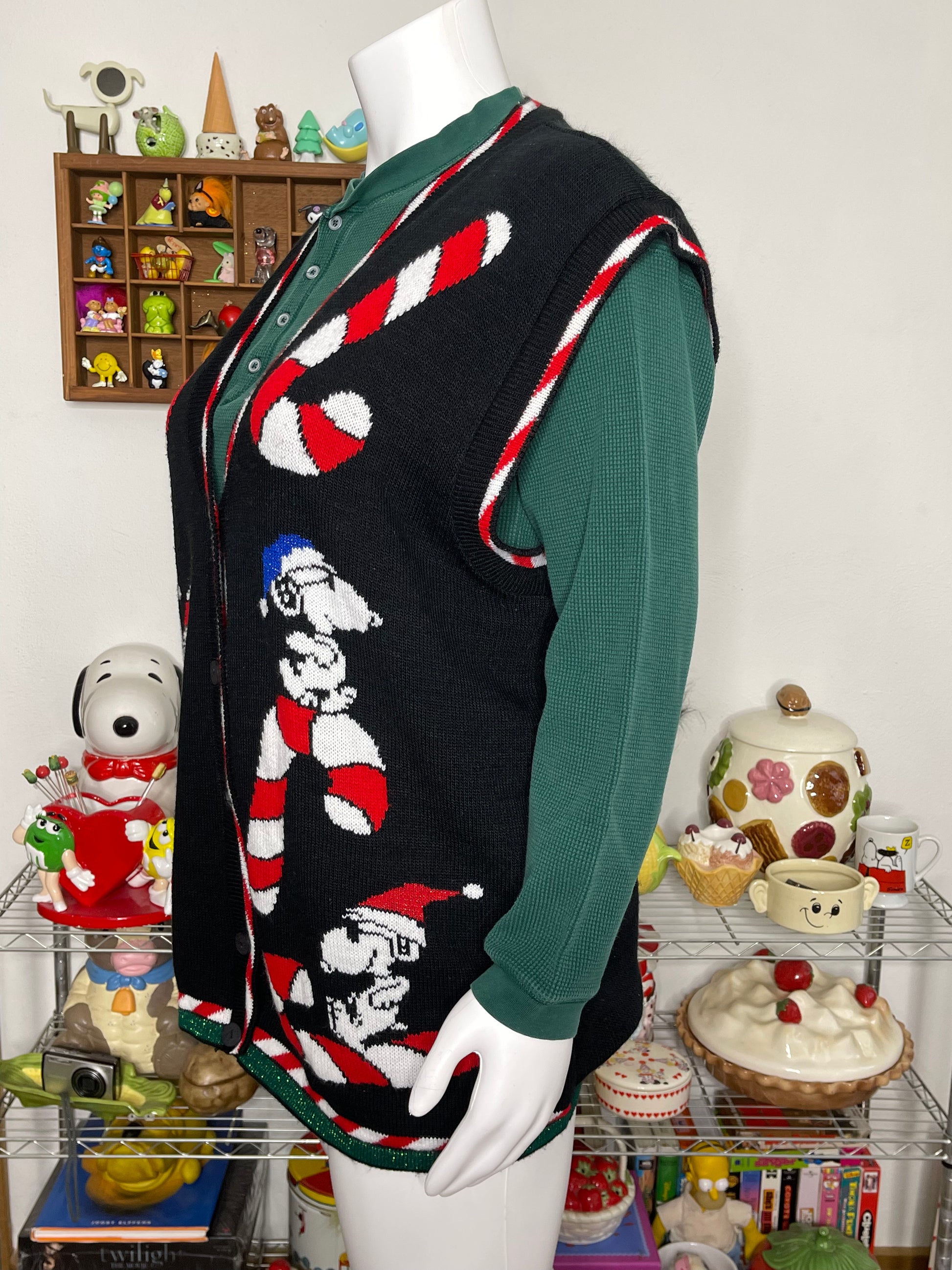 Vintage 90s Plus Size Snoopy Holiday Knit Candy Cane Vest