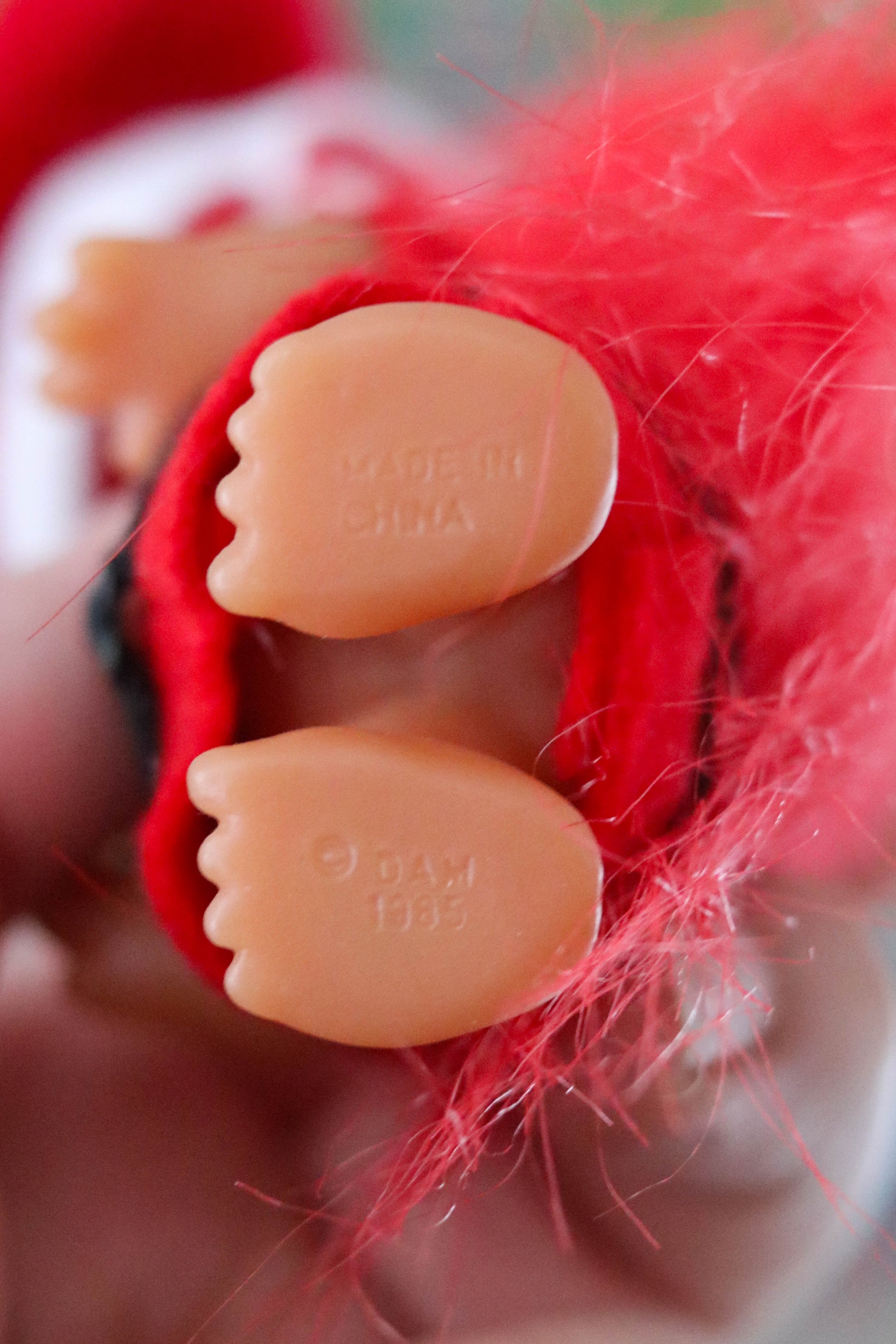 • In vintage condition, it has small scuffs and marks. The troll has a white scuff near his eye & his hat has some dark staining on the band. The hat doesn't stay on to well. His belt was falling off so I superglued it back on.