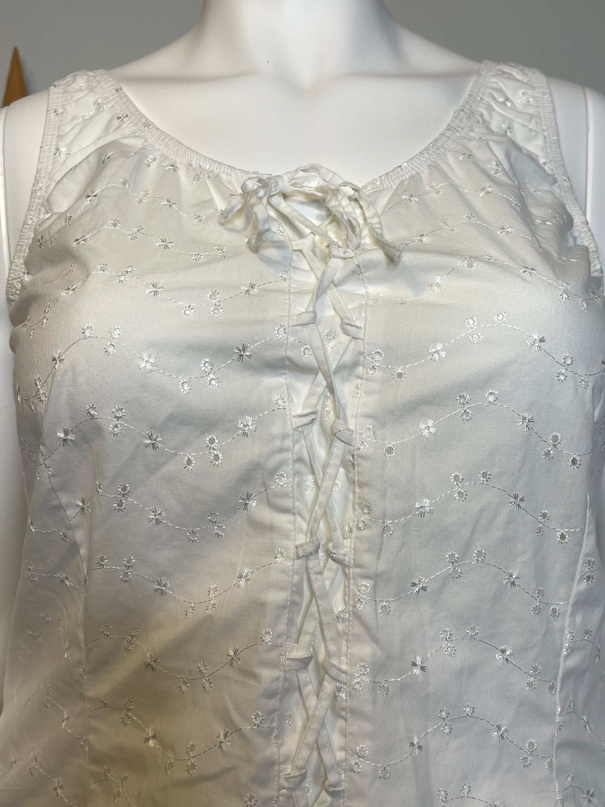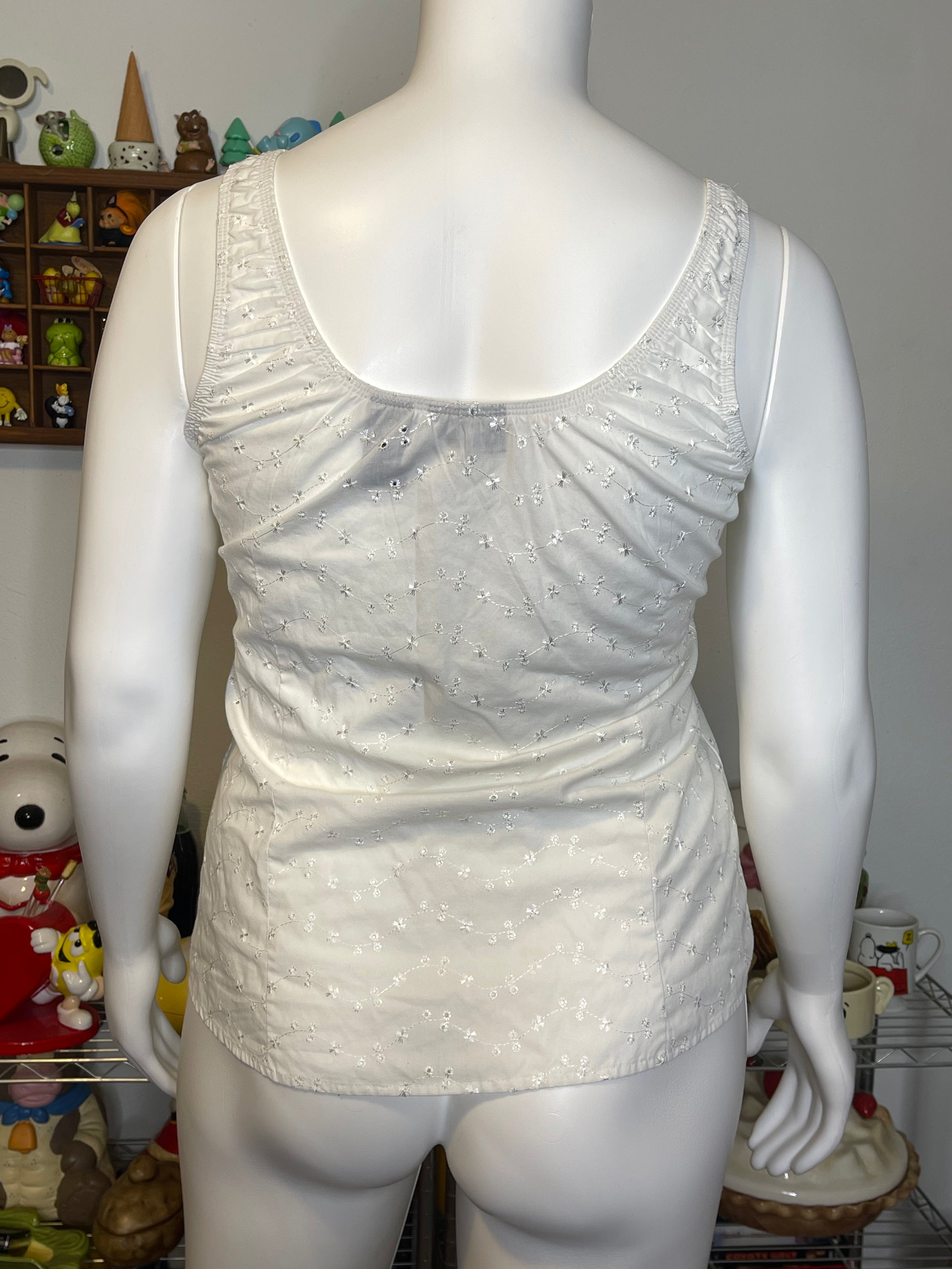 2000s White Floral Eyelet Corset Style Tank Top Sz 1X